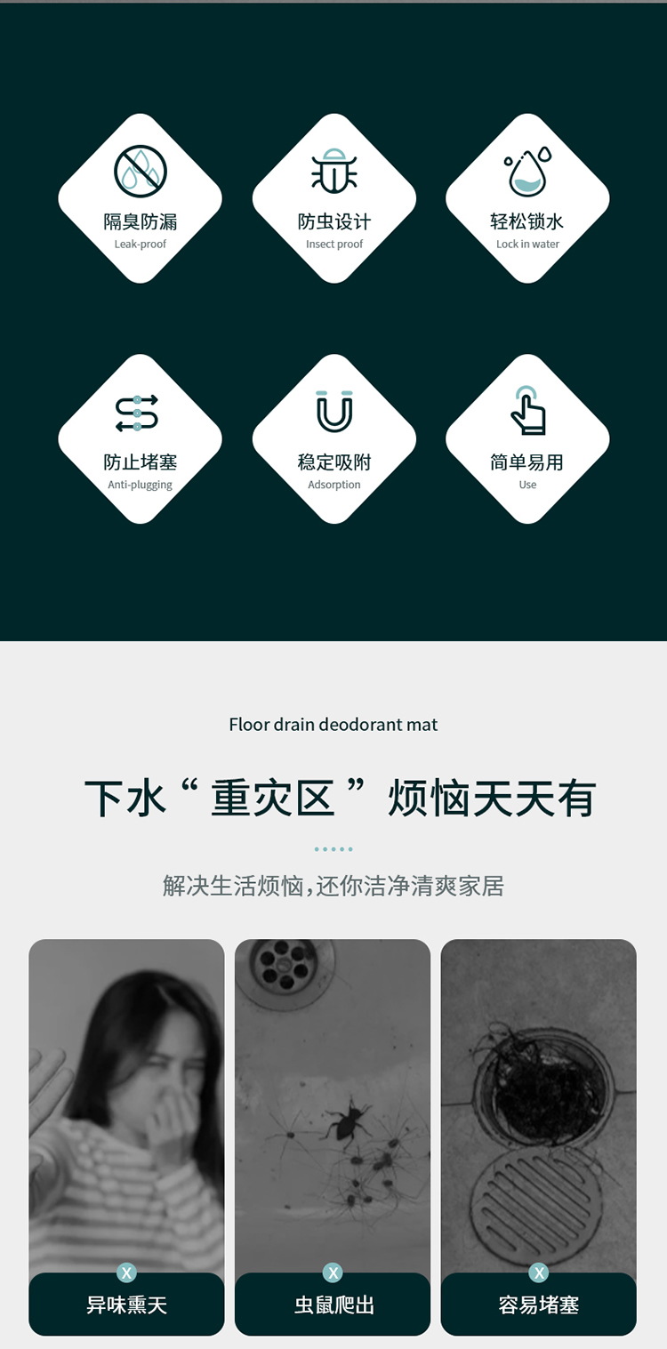 FaSoLa地漏防臭器硅胶垫厕所卫生间下水道防反味除臭密封盖堵口