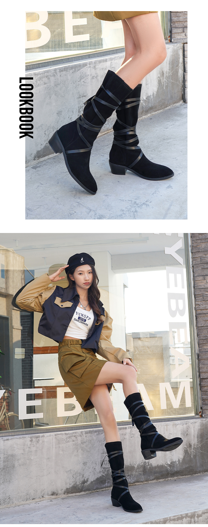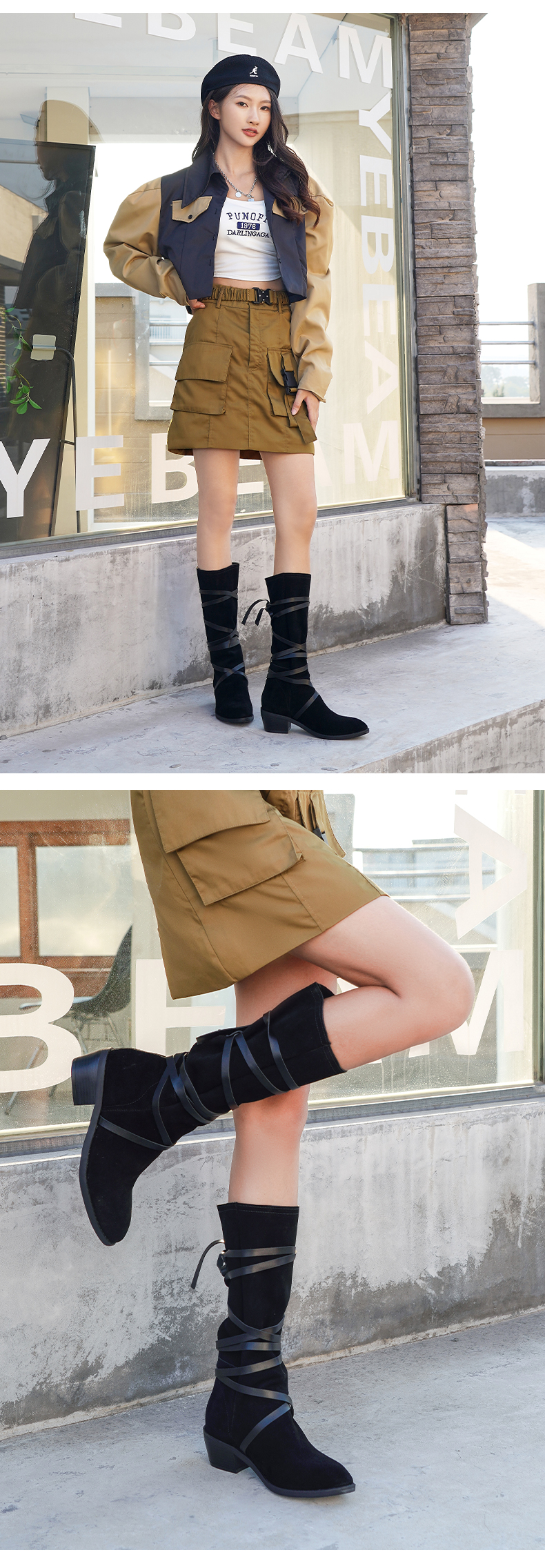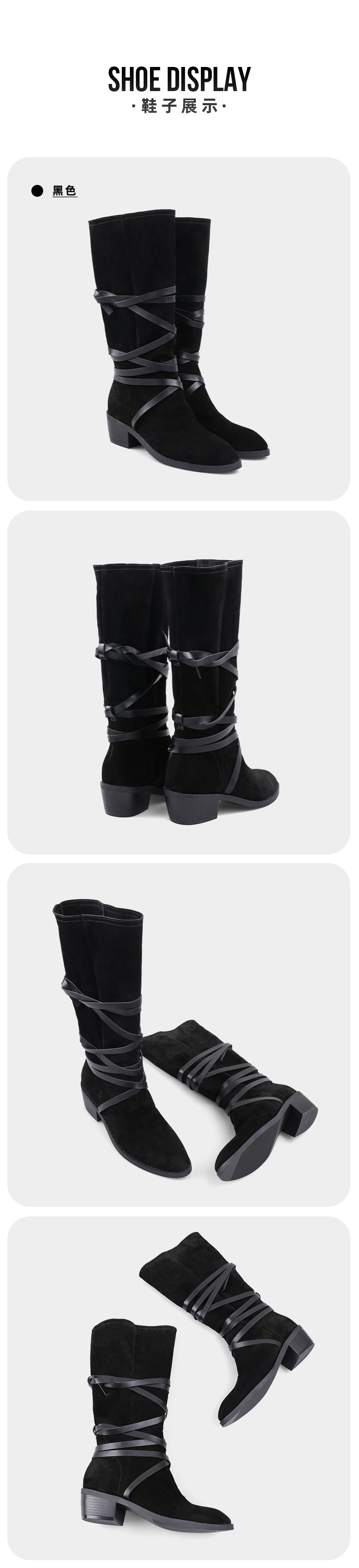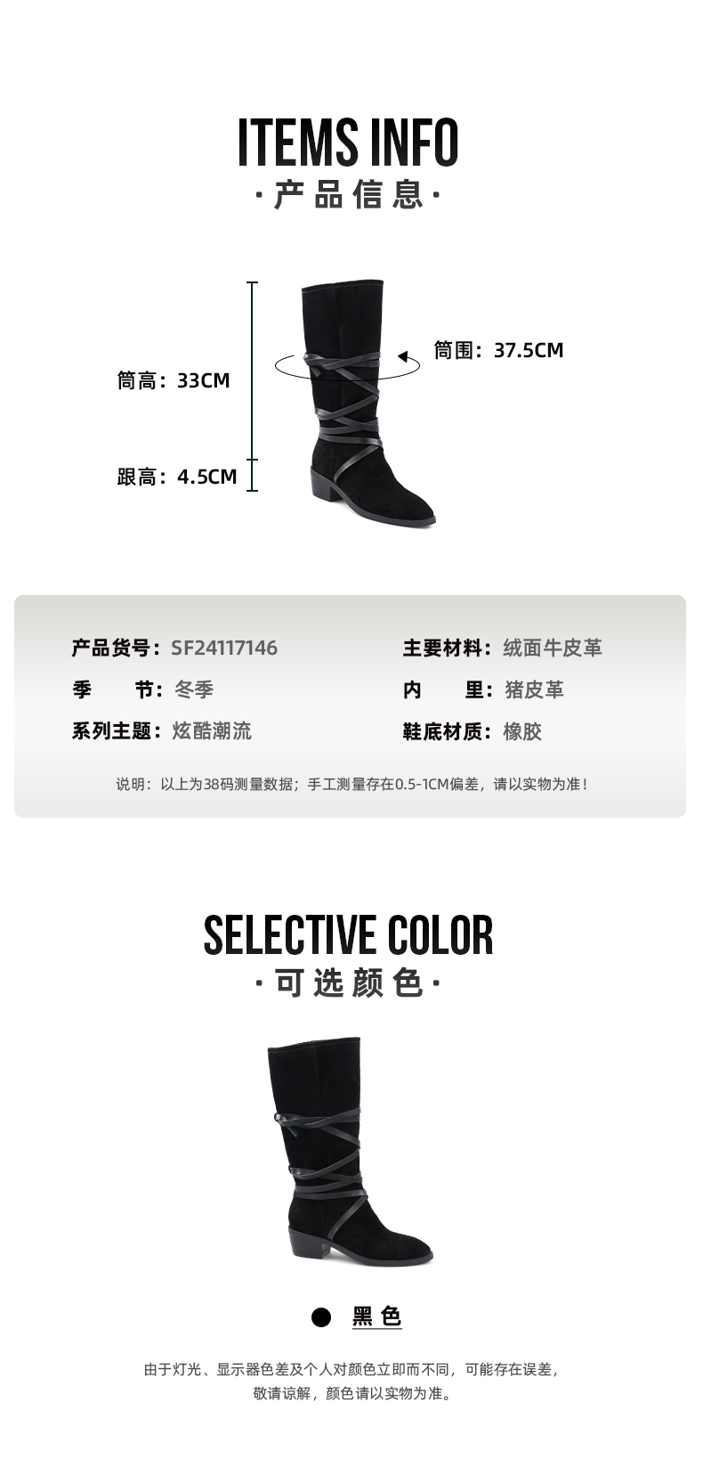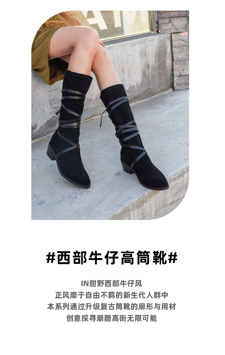 【春节不打烊】Safiya/索菲娅 长靴2022年新品新潮设计感小众绑带粗跟尖头显瘦高筒靴 SF24117146