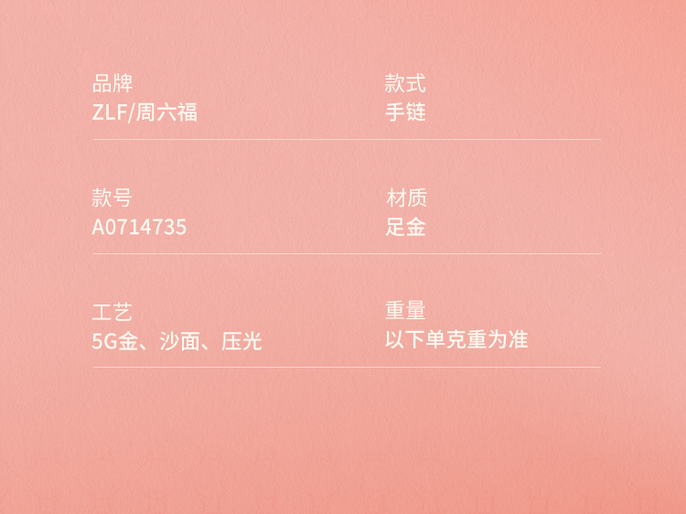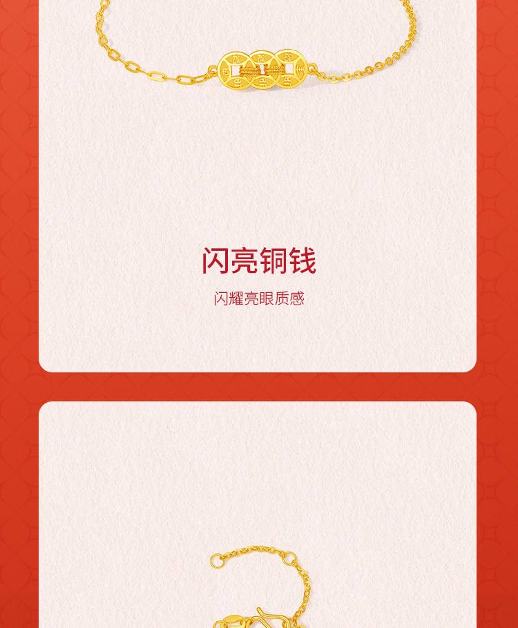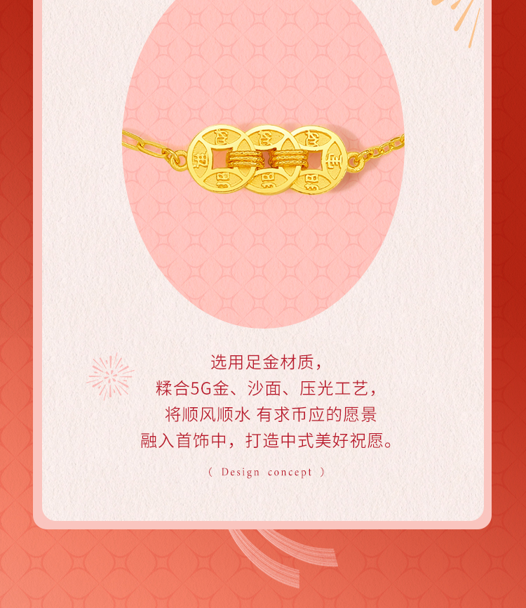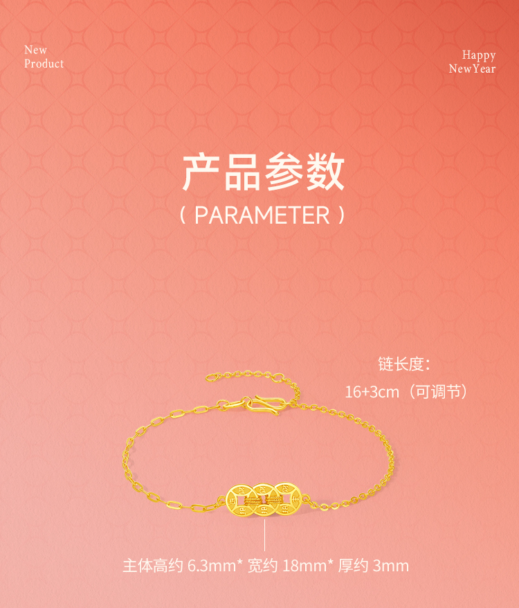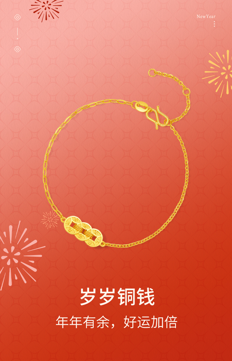 周六福5G黄金计价手链女款岁岁铜钱首饰春节新品送女友礼物