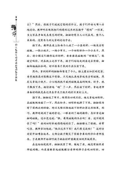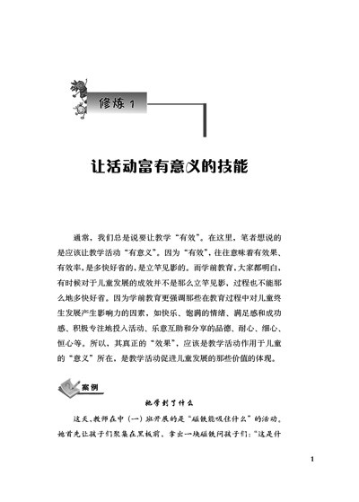 内容讲解得生动,方法具体、可操作,能满足幼儿教师在专业技能学习中的需求。在本书中,我们看到:教学中明确的指令,教学材料的细致准备,教学组织形式的生动罗列……这一切,对于那些刚刚踏入工作岗位、茫然不知所措的年轻教师来说,真是完美的参考宝典。拥有这本书,他们在教学中遇到的很多问题就会迎刃而解。