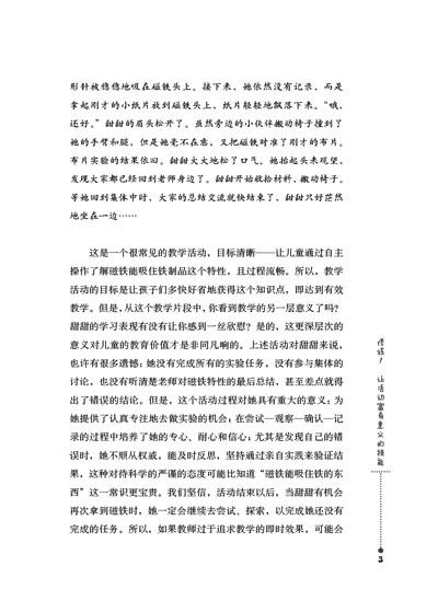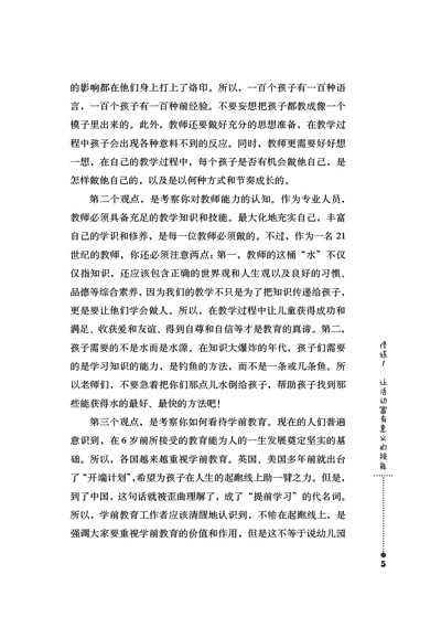 本书具有两方面鲜明的特点,一是生动形象,有案例分析、图文描述、实物推荐等;二是指导具体,细致到教室中黑板磁铁的配置量等问题,使读者一目了然,可模仿、可操作、可实践。这是一本非常实用的书,可以成为幼儿教师的教学工具手册,值得幼儿教师学习、阅读。