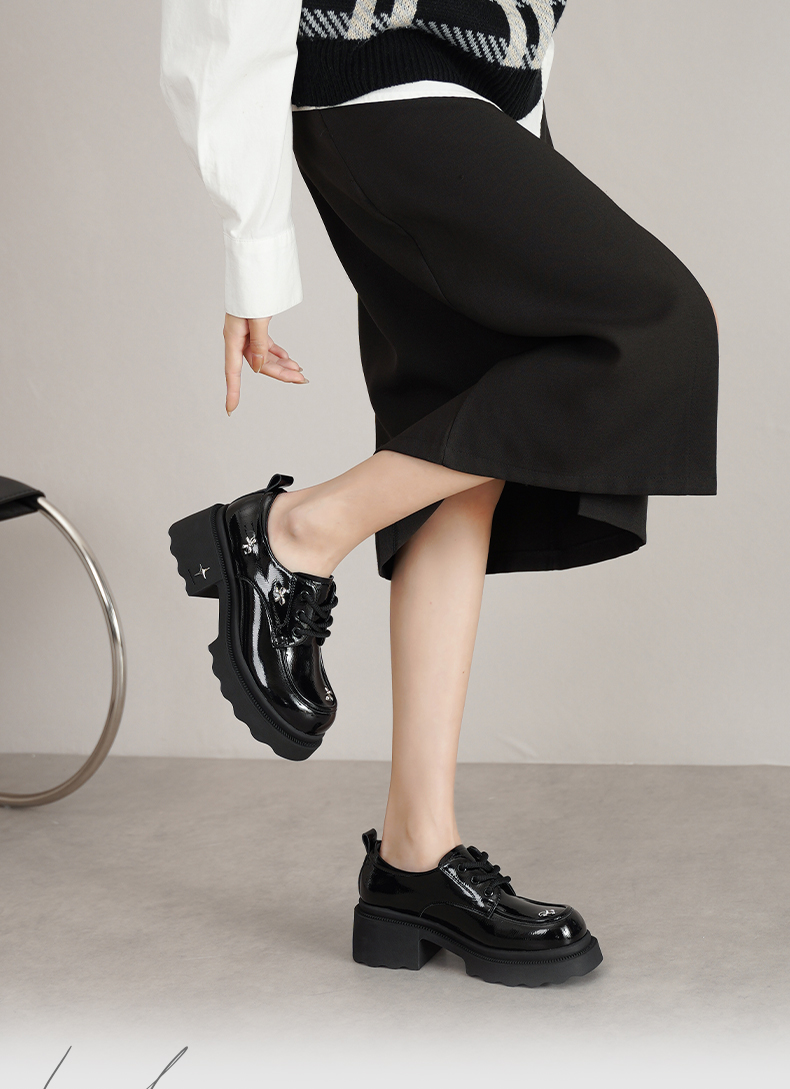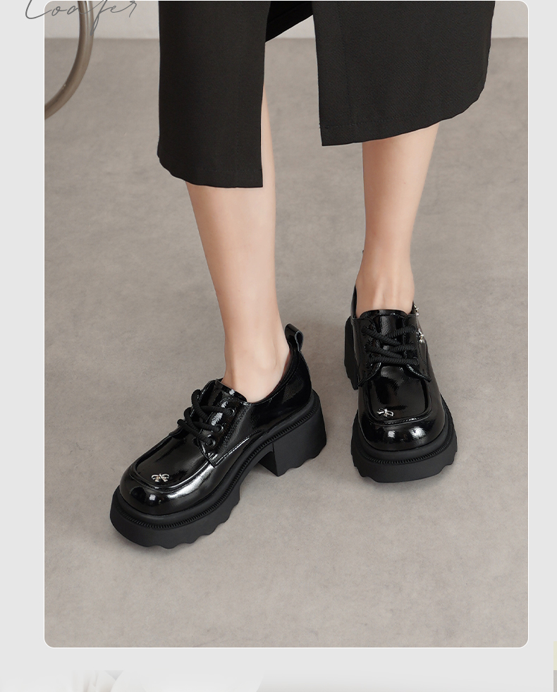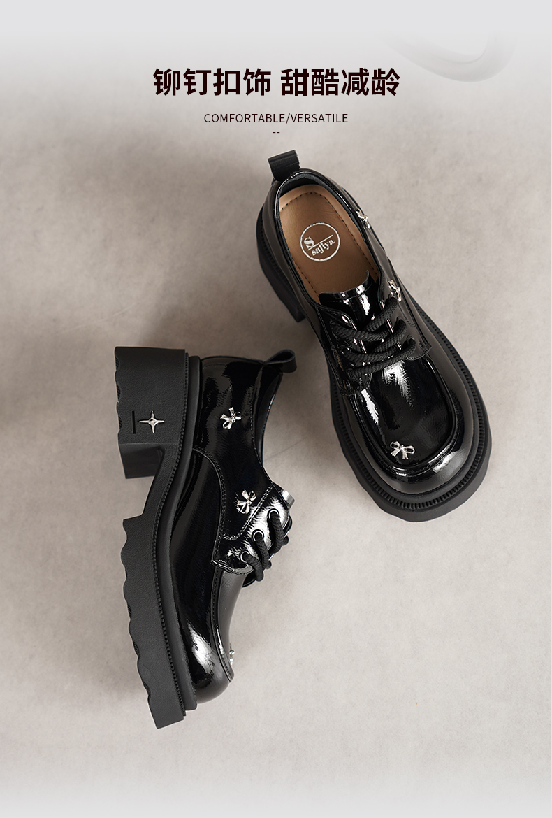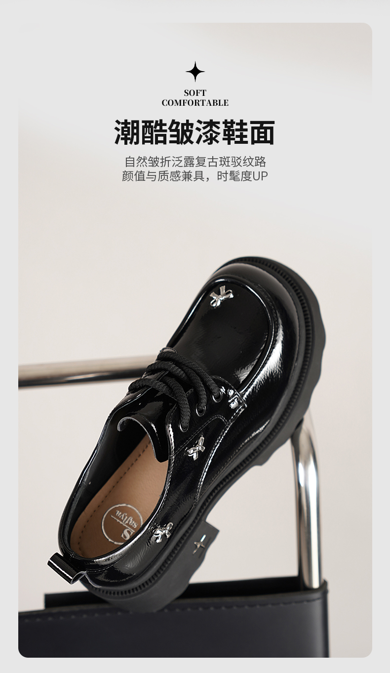 预售12天|Safiya/索菲娅2025酷圆头增高粗跟英伦风厚底系带JK乐福鞋SFD1112221