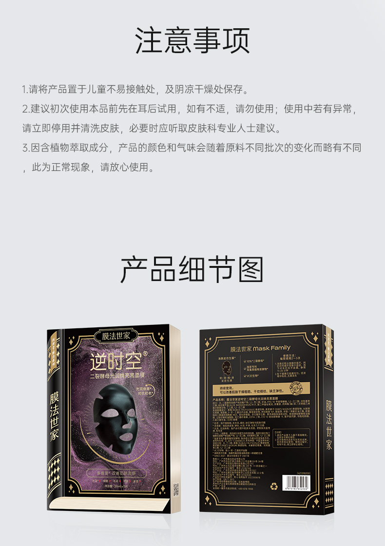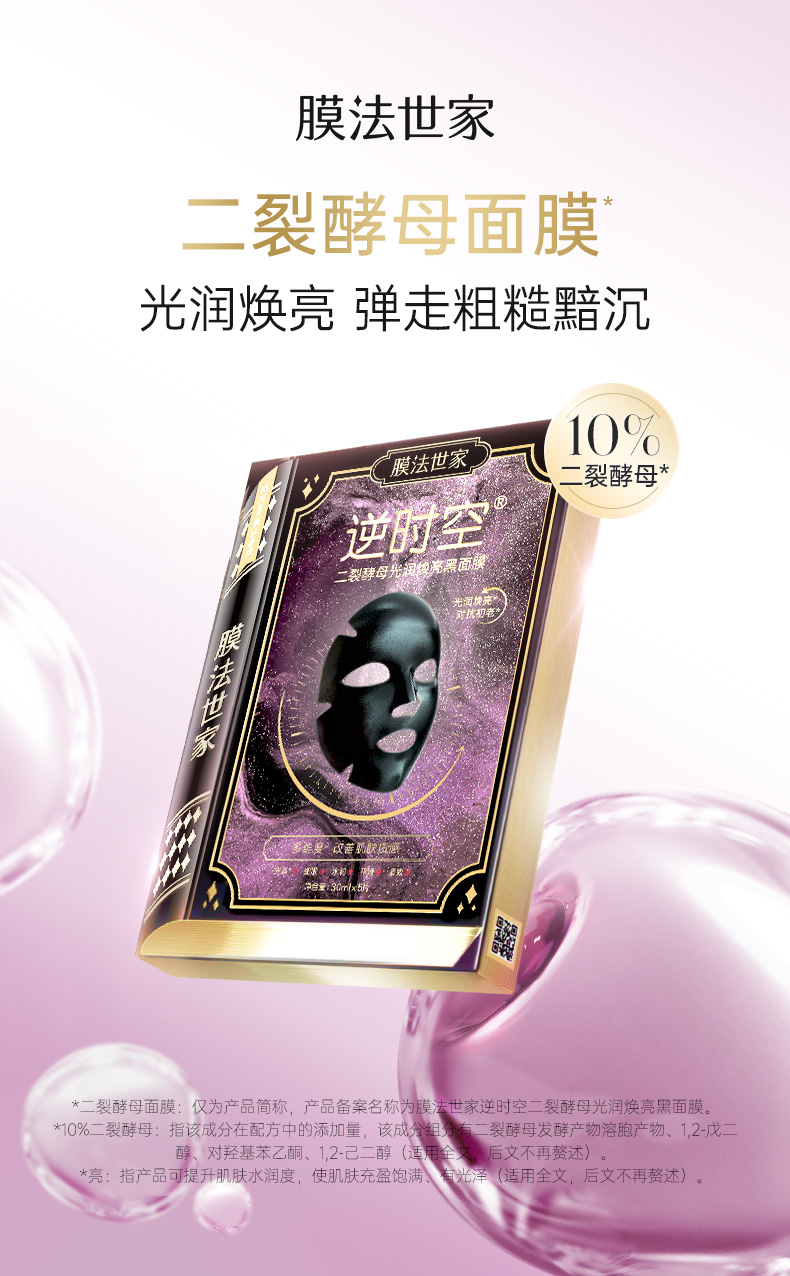 【抗老推荐|¥59/10片】膜法世家二裂酵母亮润焕颜黑面膜5片装*2盒