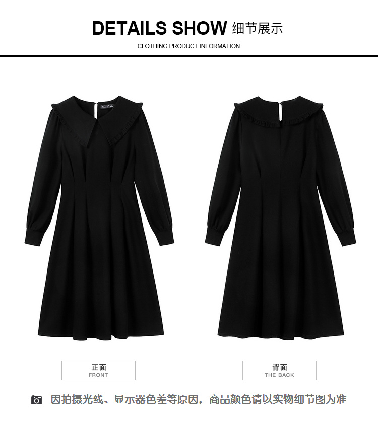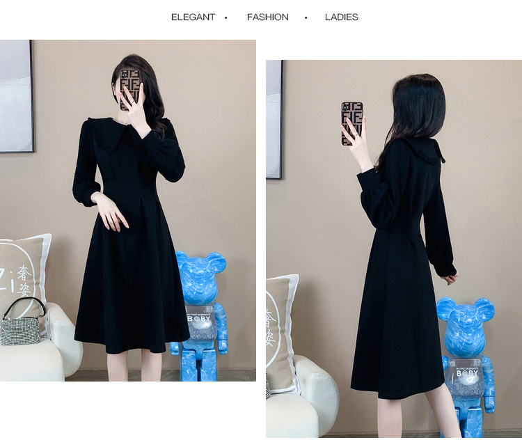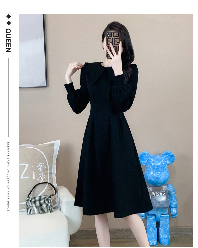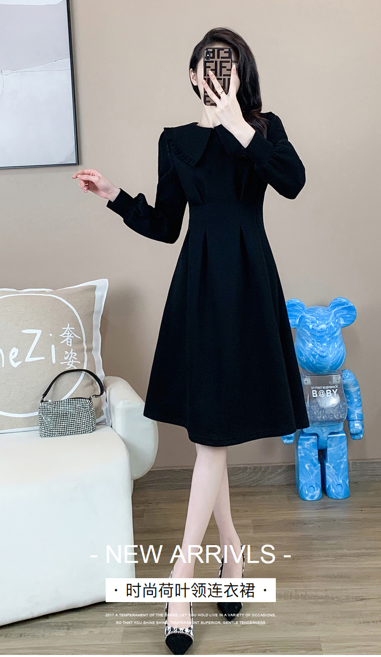 奢姿2024年秋装新款大码女装赫本风荷叶领连衣裙胖妹妹时尚裙子9931852529
