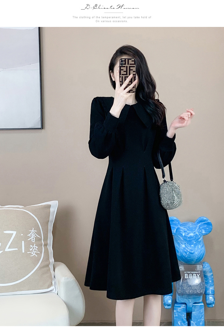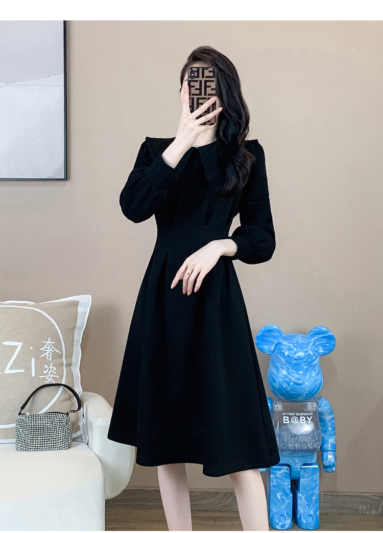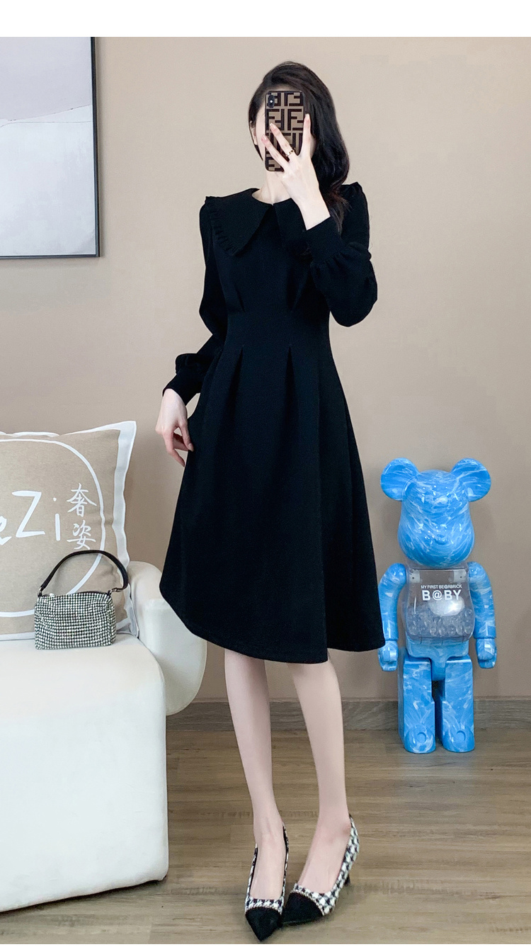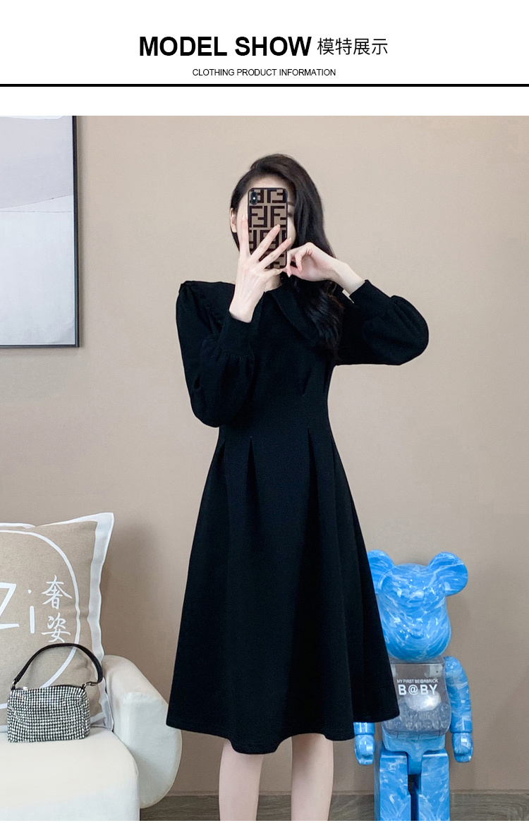 奢姿2024年秋装新款大码女装赫本风荷叶领连衣裙胖妹妹时尚裙子9931852529