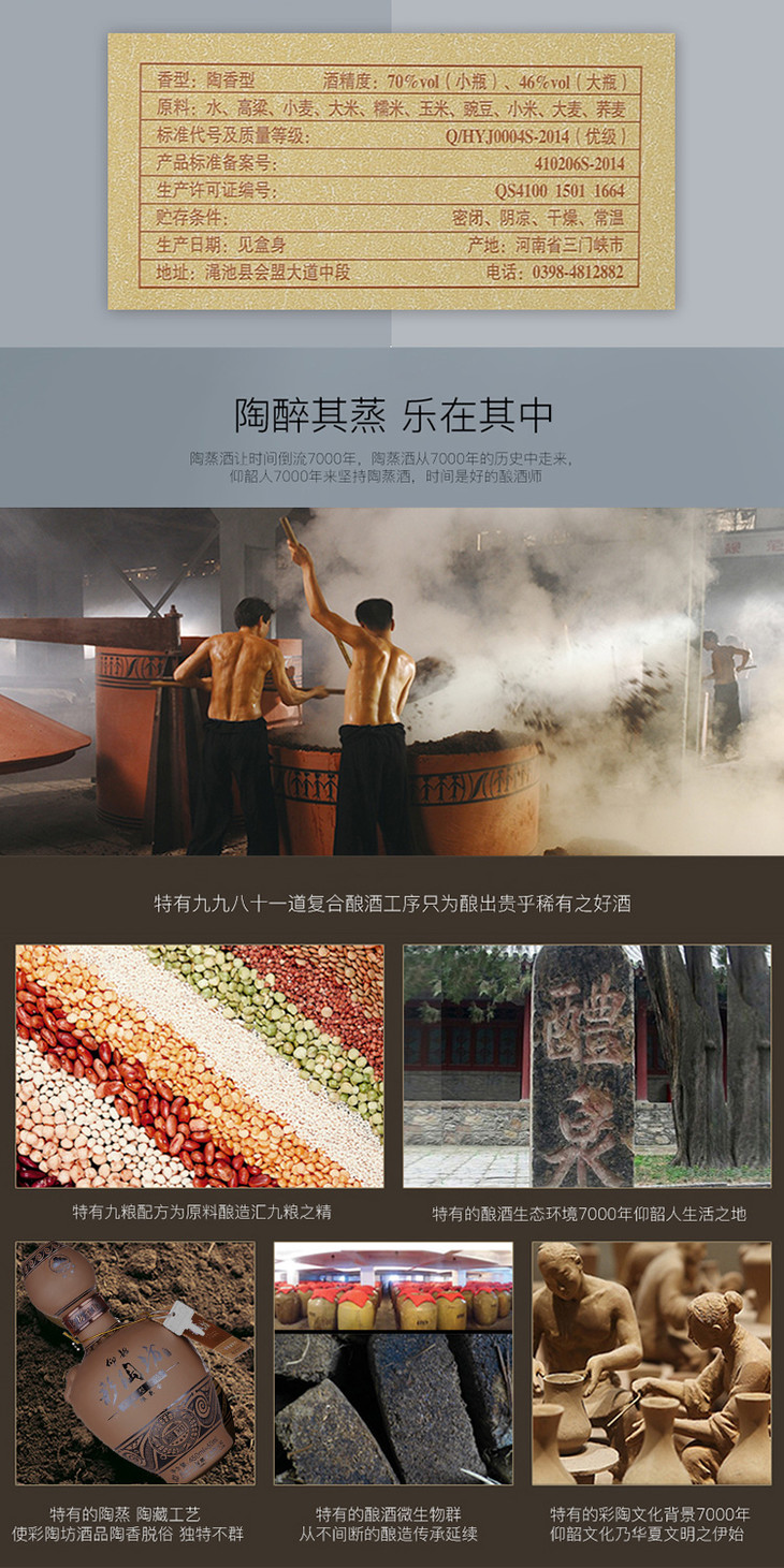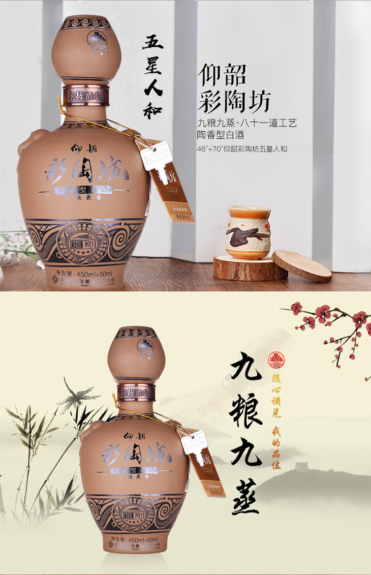 仰韶 彩陶坊 五星人和 70度+46度 500ml陶香型白酒
