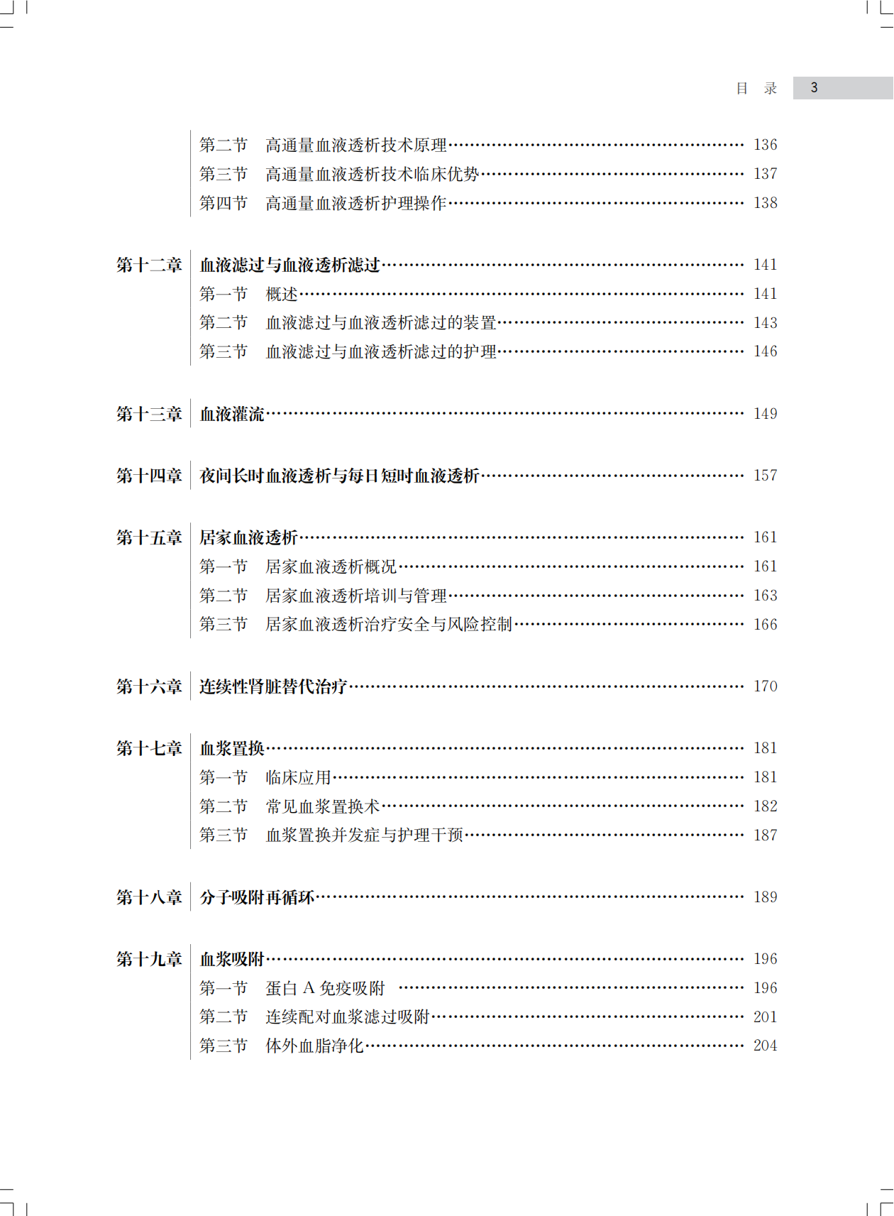 本书是在第二版的基础上,立足血液净化技术快速发展的当下形势,结合国内外最新的前沿知识以及我国血液净化质控标准和规范化管理要求,进行了第三次修订。本次修订增加了国内开展的血液净化新技术,如夜间长时透析技术、居家血液透析技术、连续配对血浆滤过吸附治疗等;同时增设了血液净化各类操作视频,更直观地展现标准操作流程;扩充了血液透析护理评估内容,突出了预见性护理的重要性;更聚焦透析患者的康复护理,强调生活质量在慢病管理过程中的重要性;针对近年来腹膜透析中心的不断扩增的现况,增加了腹膜透析中心质量管理内容,给血液净化护理管理者具有可操作性的管理目标。同时,本次修订特别加入了信息化技术在血液净化管理中的应用,更加强调了大数据时代科学管理对提升管理效能的作用和优势。本书还特别增加了突发公共卫生事件应急预案内容,可以给读者一些工作指引,从而更加从容地去应对突发状况。本书适合血液净化护理人员及相关从业者使用。