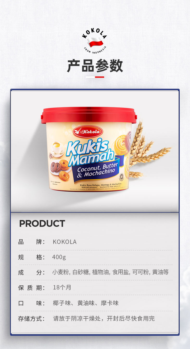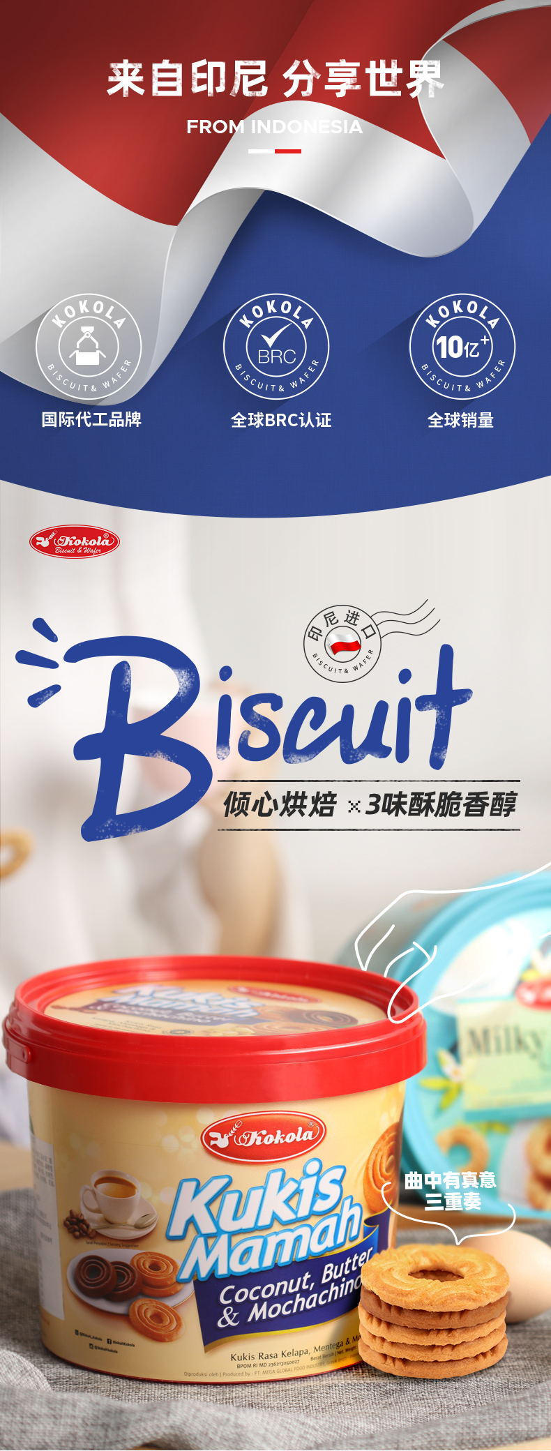 【C位出道】印尼Kokola 什锦饼干400g/桶 可可乐 椰子 黄油 摩卡味 综合口味