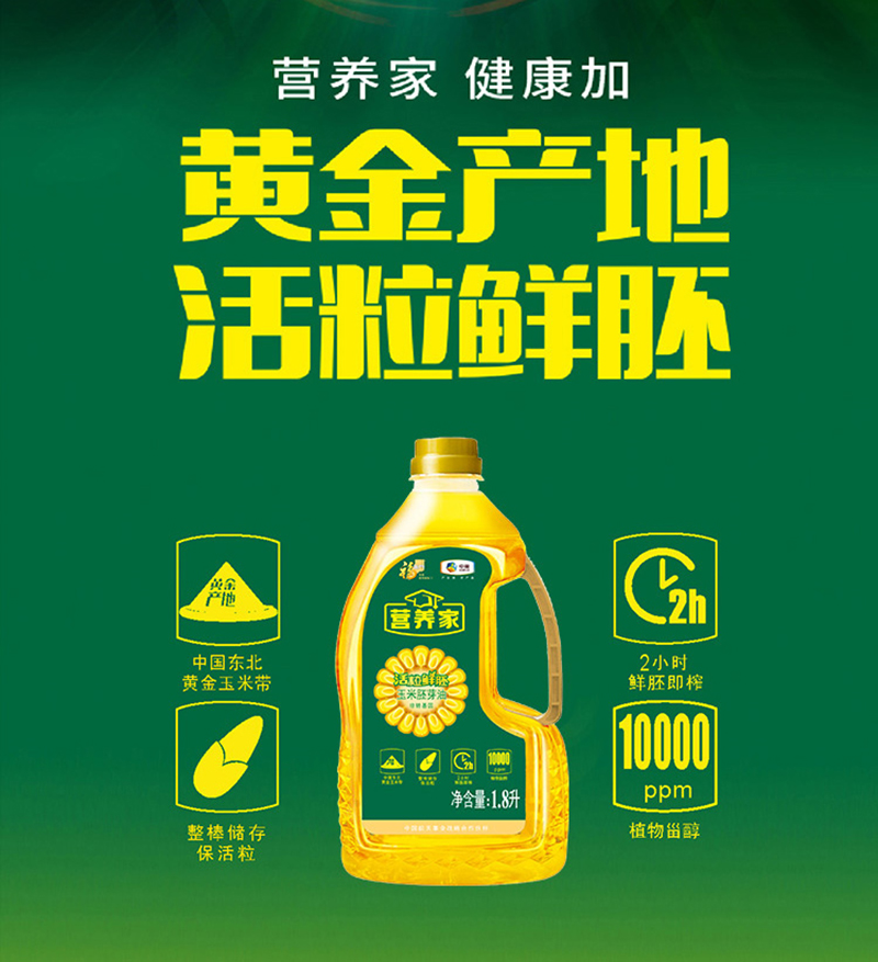 福临门营养家活粒鲜胚玉米胚芽油1.8L【有效期至2026年2月】
