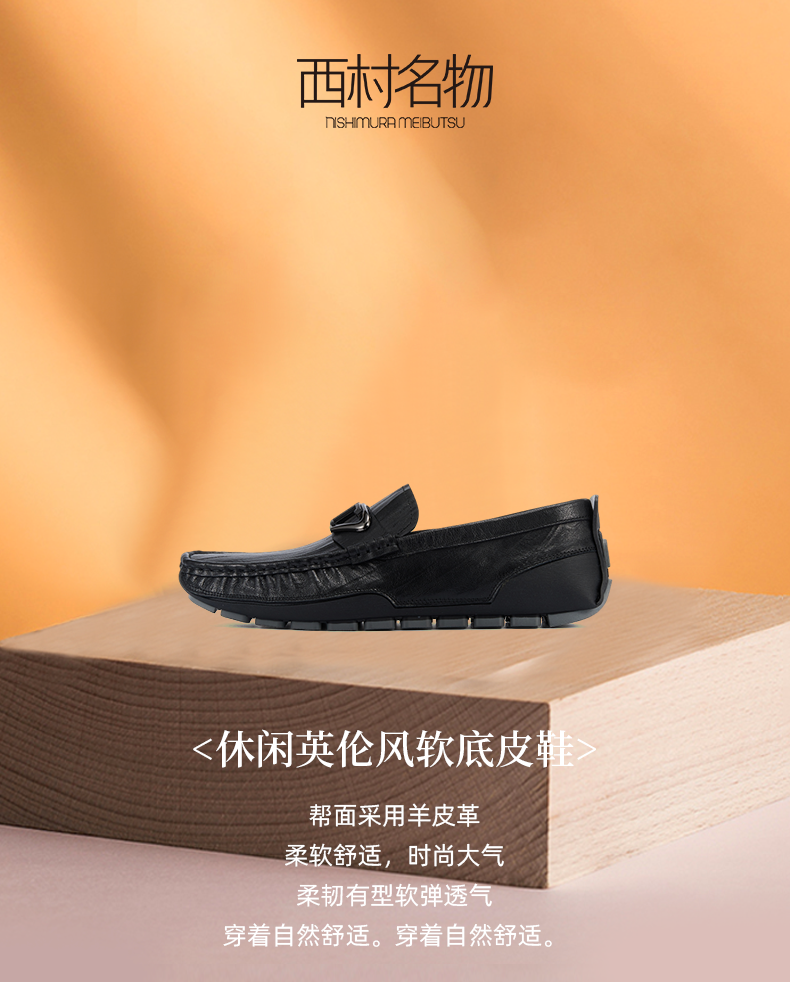 西村名物2024夏季新品真皮高档羊皮防滑休闲英伦风软底皮鞋男士X14AW10781