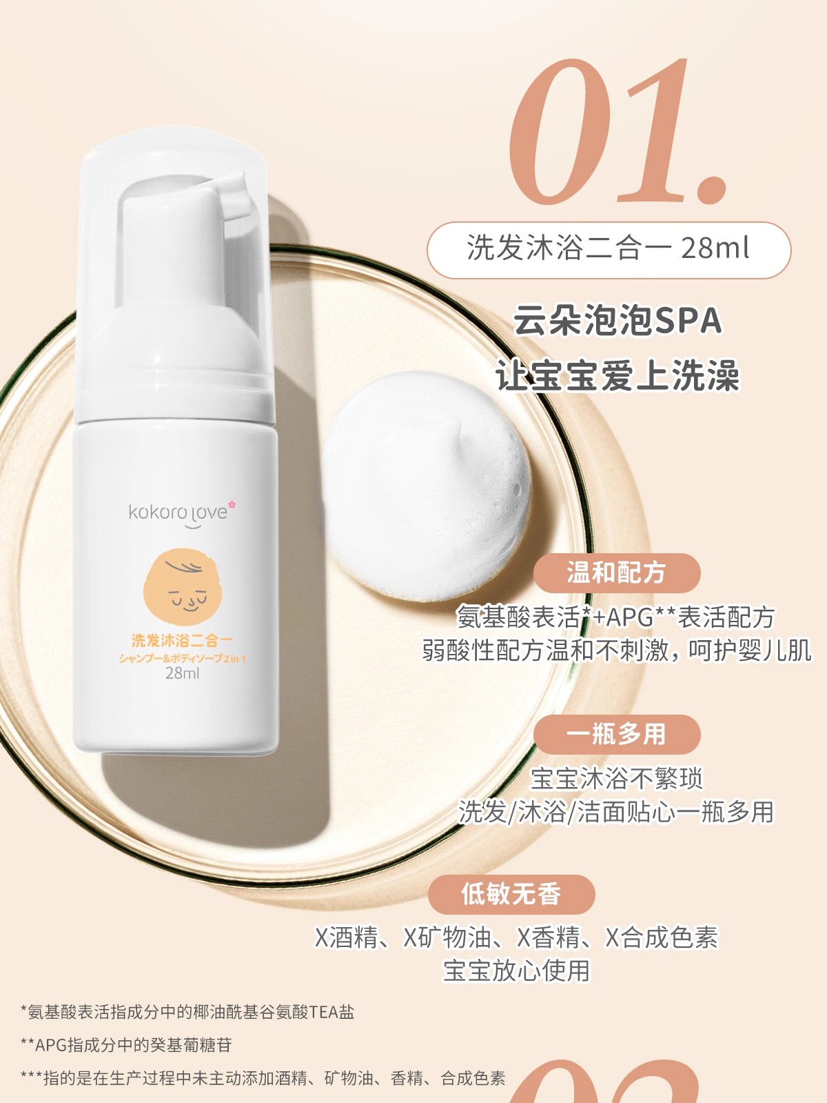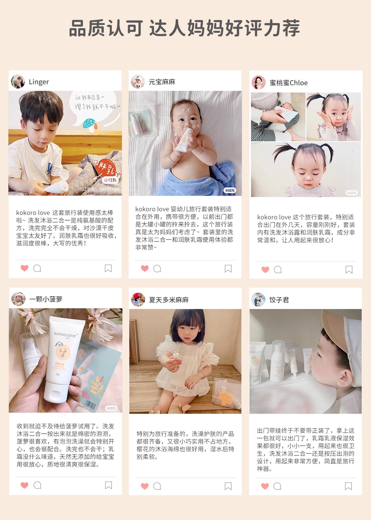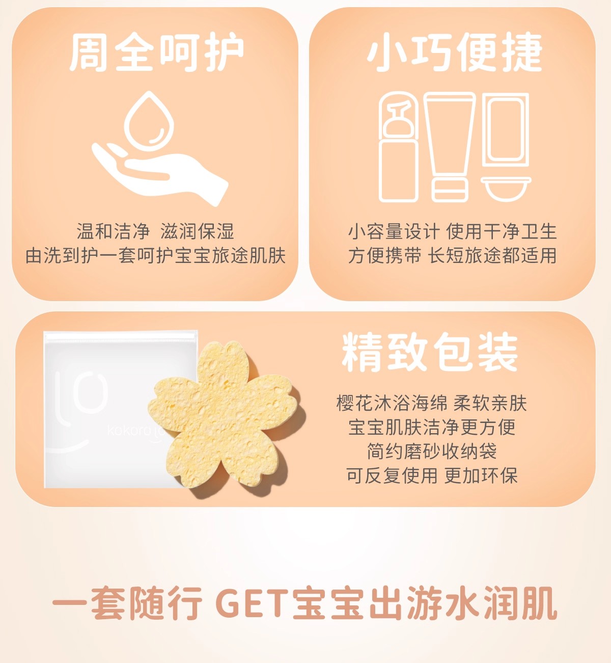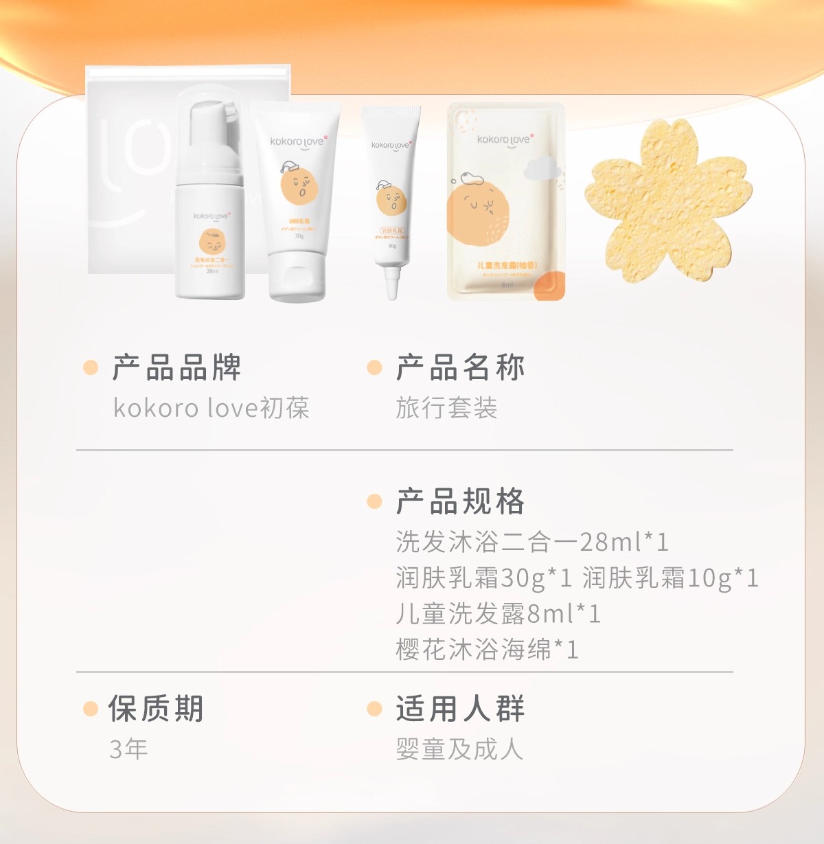 kokoro love洗护旅行套装(洗发沐浴二合-28ml+润肤乳霜30g+樱花沐浴海绵+儿童洗发露8ml+儿童柔顺护发乳8g)