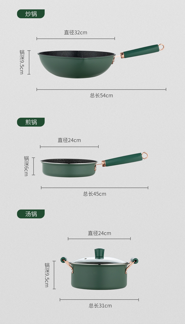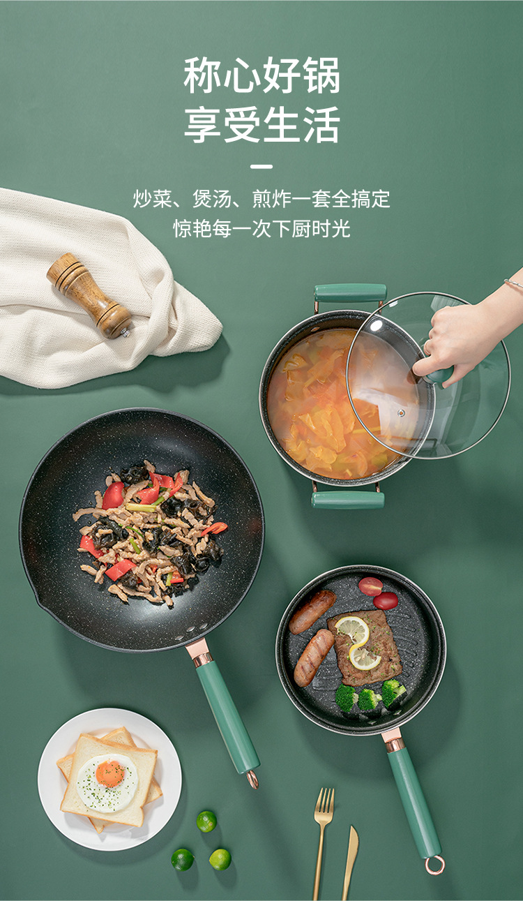 Debo德铂斯塔克精铁三件套装锅汤锅炒锅平底锅燃气灶新款礼品 商品图4