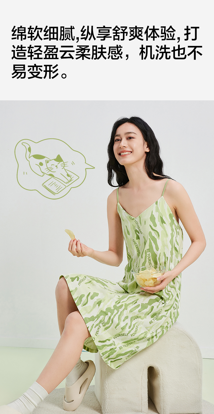 【5A抑菌 凉感棉】【有棵树】睡衣女吊带睡裙女士夏季凉感家居裙子