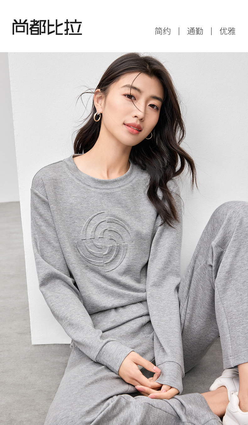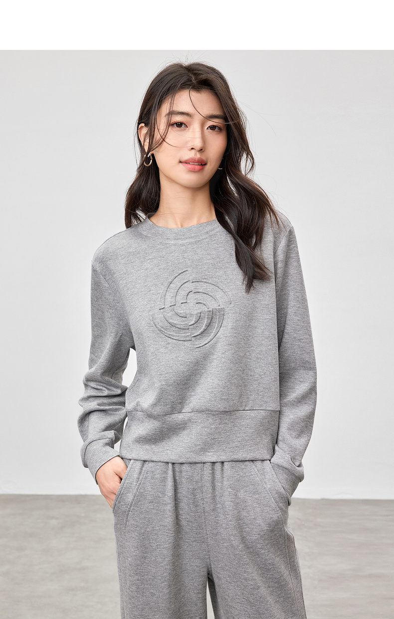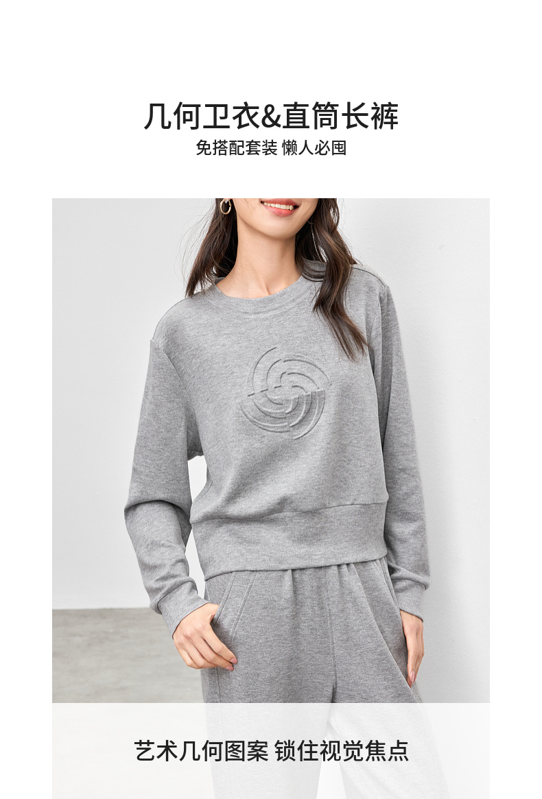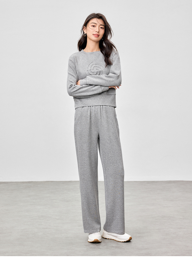 【内购】【轻氧卫衣套装】格雷系简约圆领宽松落肩卫衣&松紧腰直筒长裤-W51Z73629