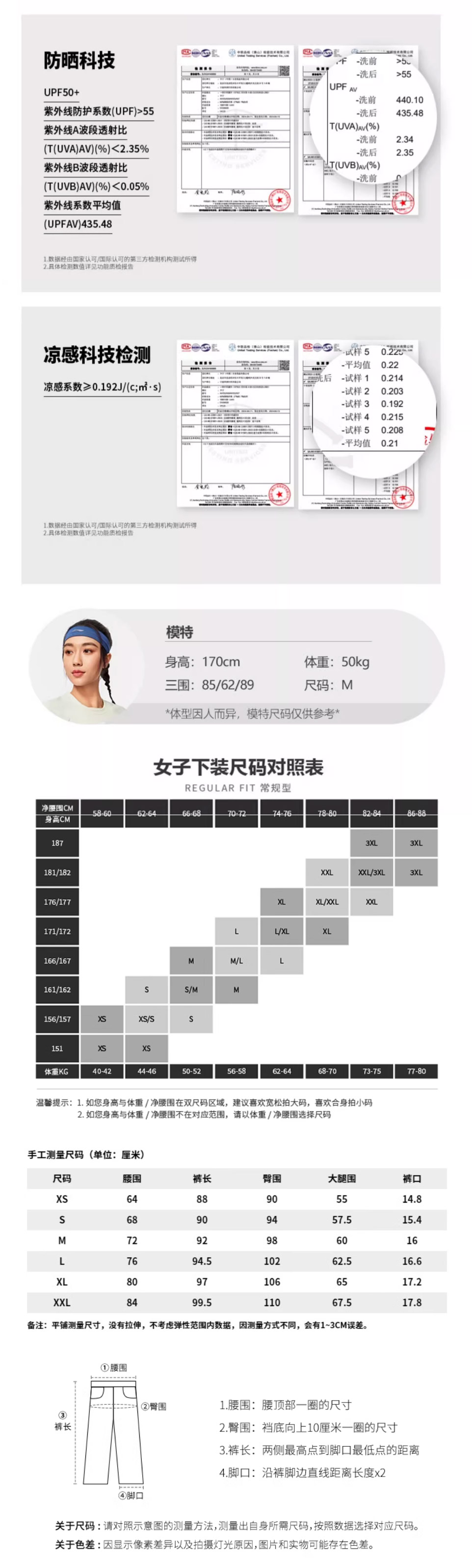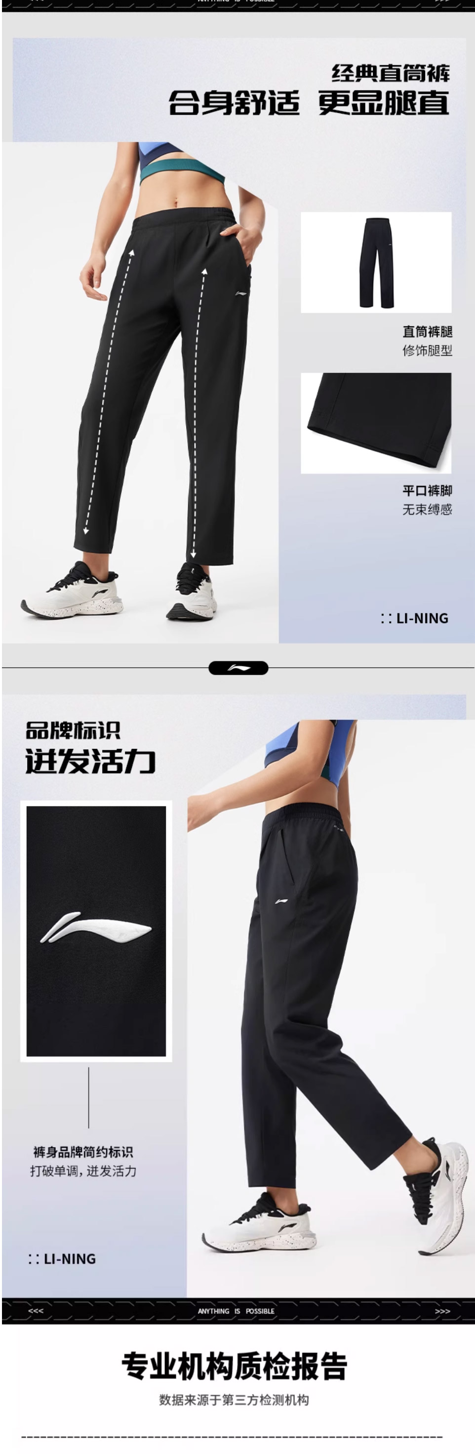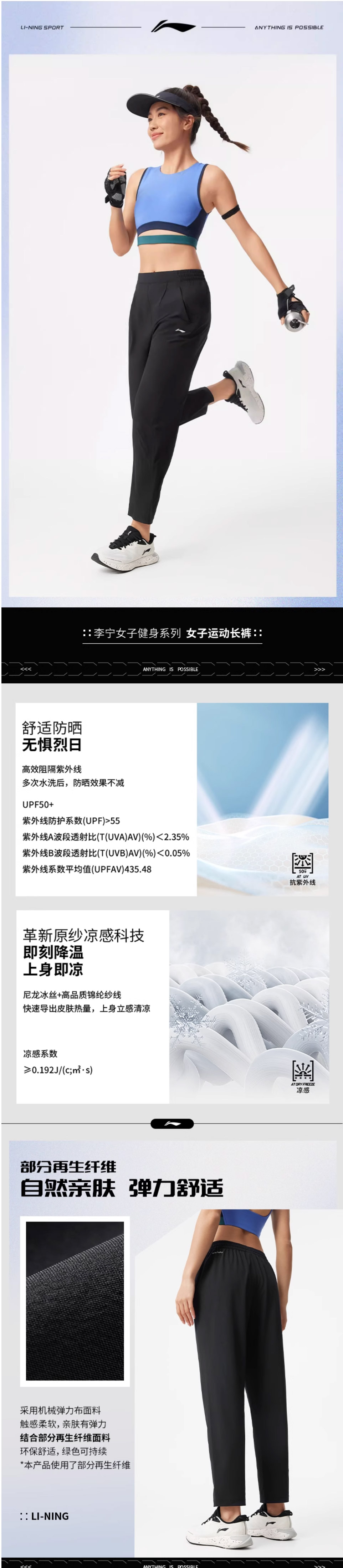 李宁女士夏季新款冰感防晒速干运动长裤AYKV092