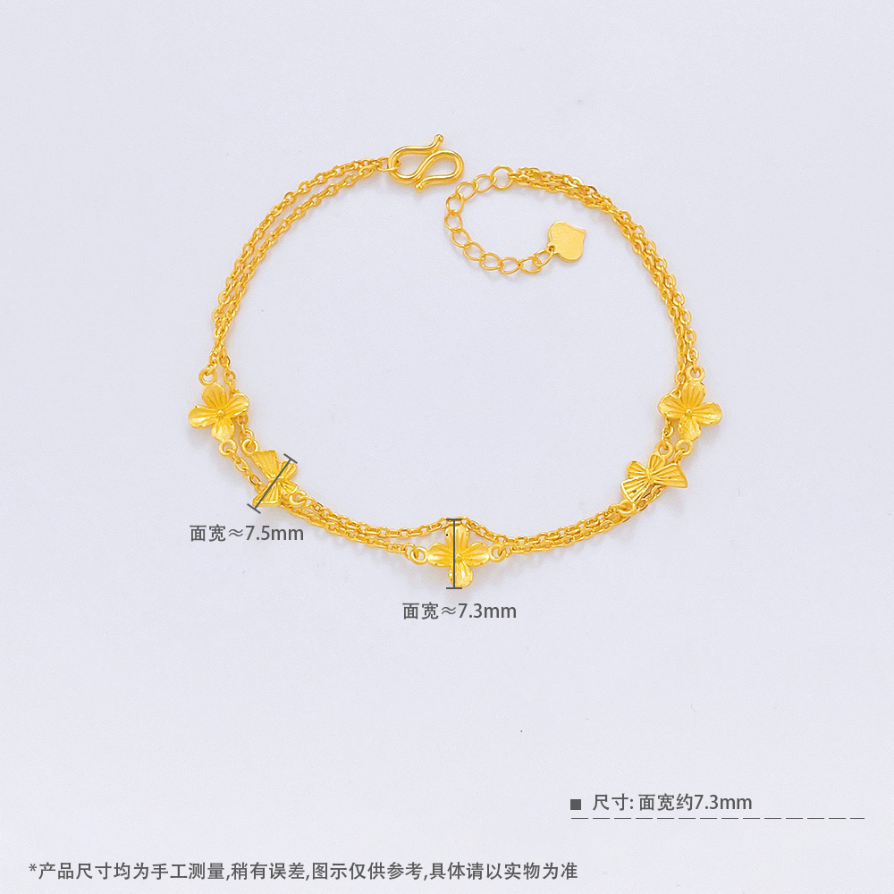 【限时克减150元】足金999.9 #复古风 【精品】实心蝶恋花蝴蝶花园双层链调节手链(AWWSL00295)(预售产品下单后不退款不退货不换货不补差价)