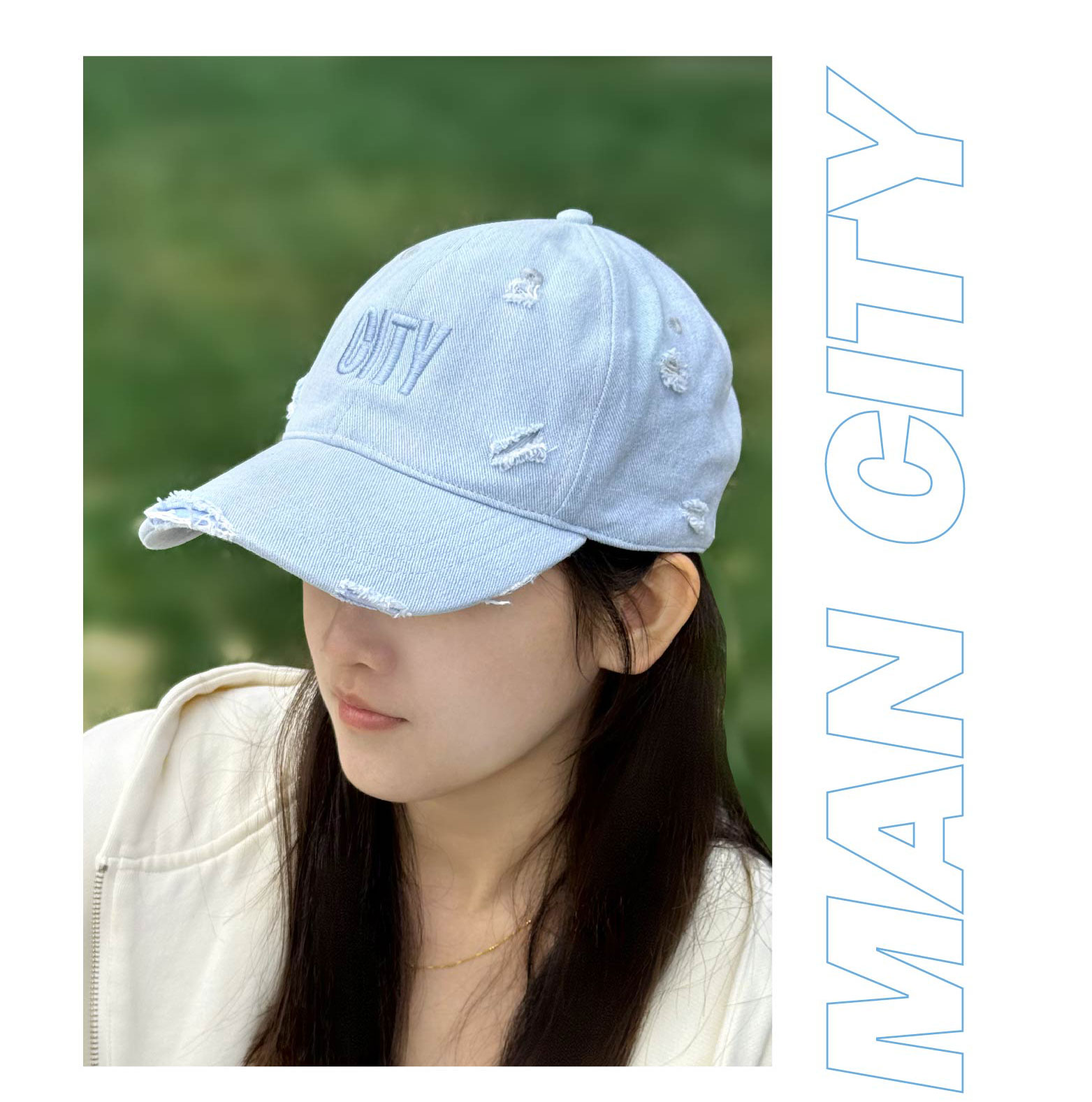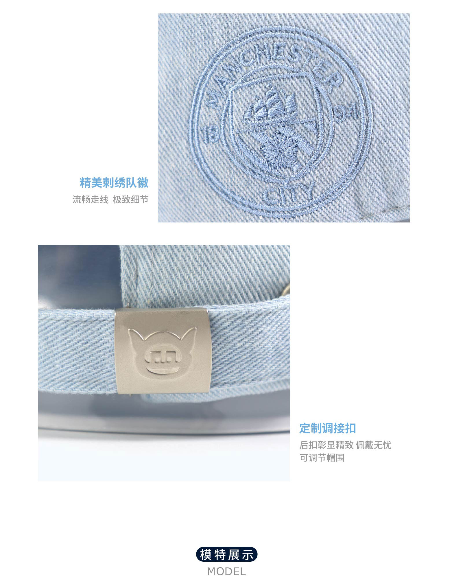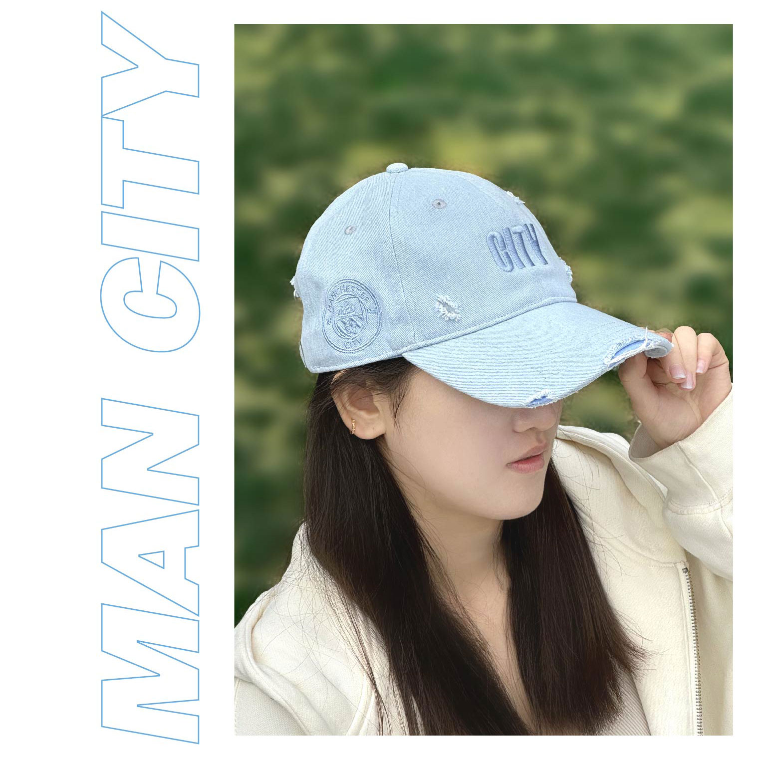 曼城俱乐部官方商品 | 新版时尚水洗浅蓝牛仔破洞棒球帽球迷用品