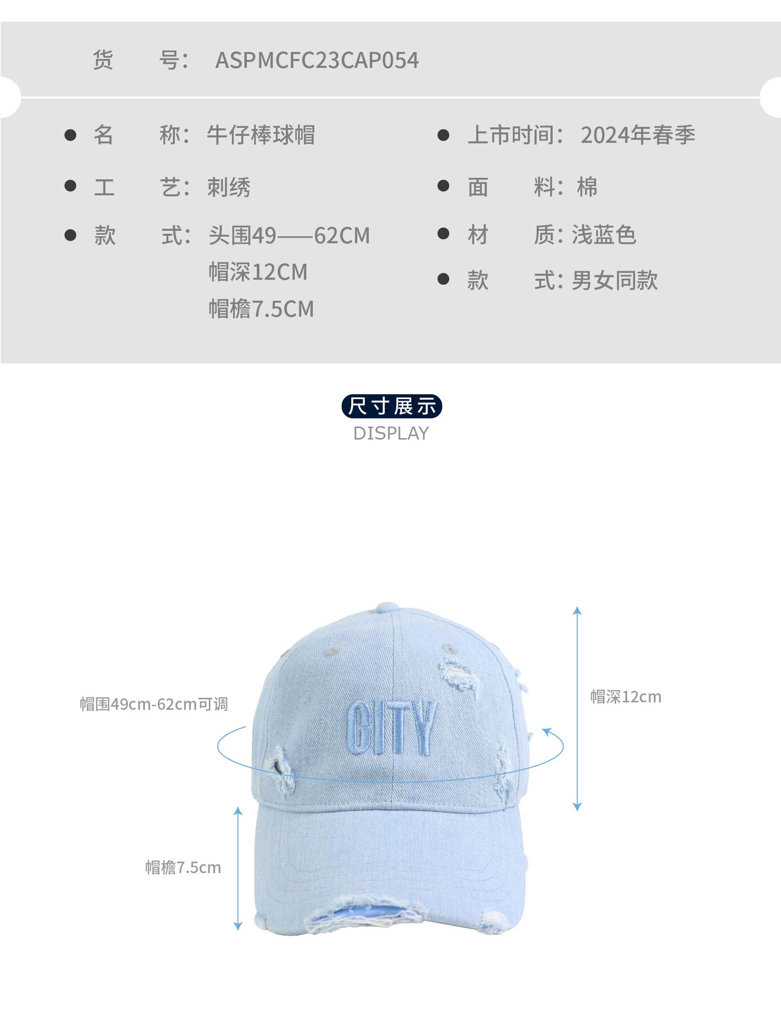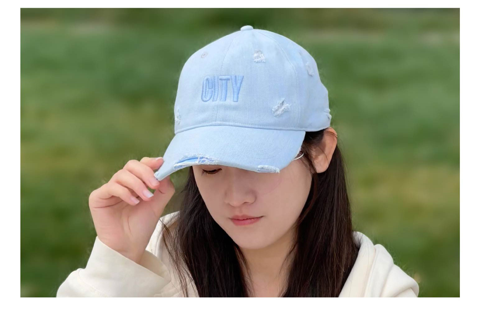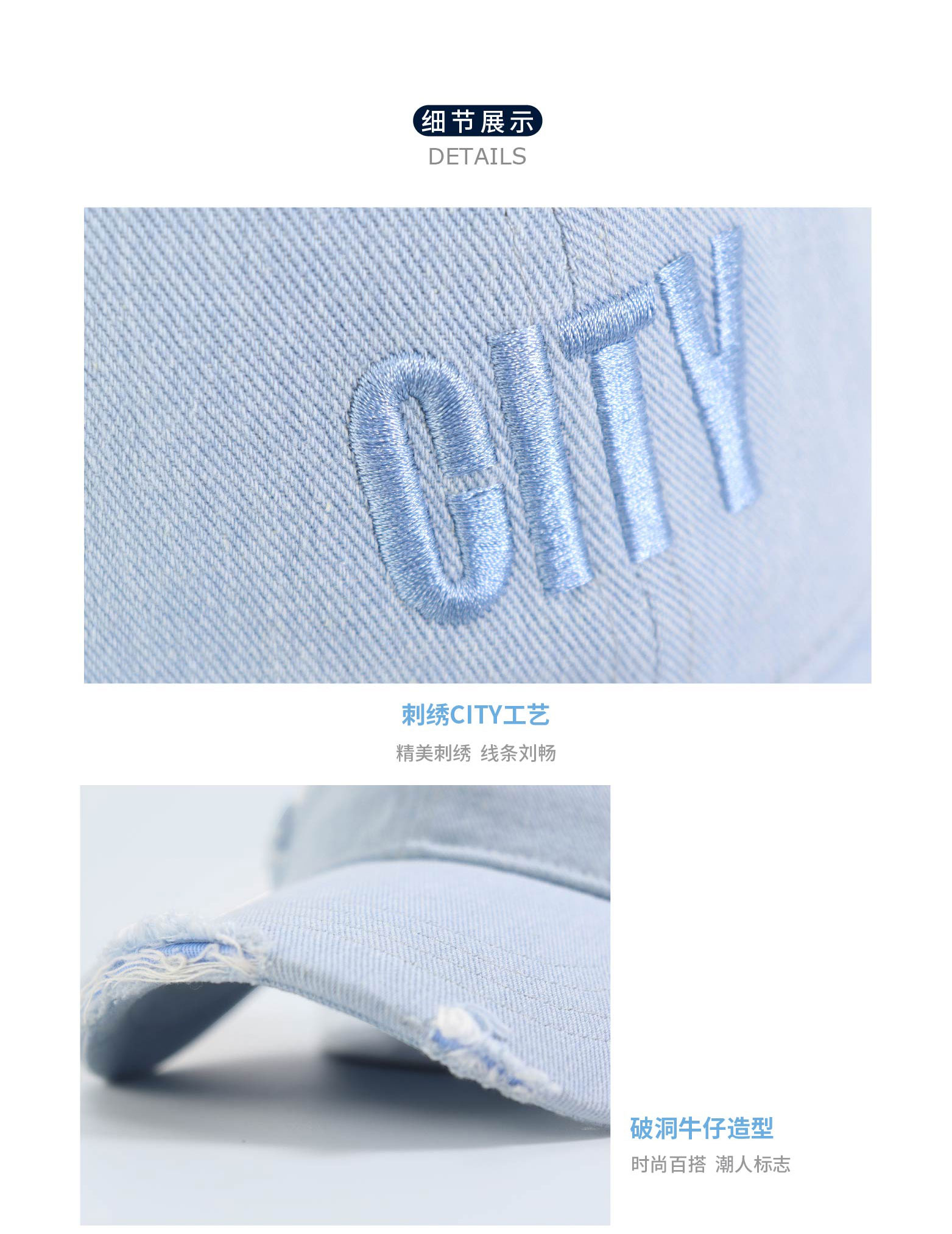曼城俱乐部官方商品 | 新版时尚水洗浅蓝牛仔破洞棒球帽球迷用品