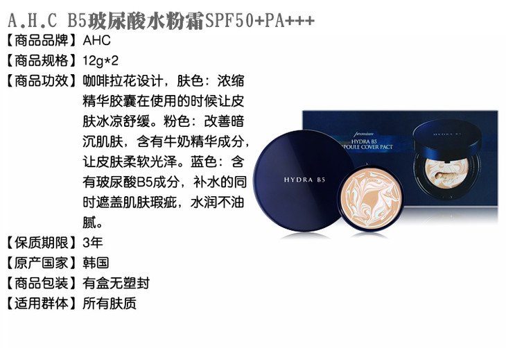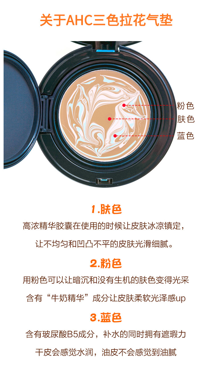 【保税仓】AHC新版B5玻尿酸气垫BB 保湿遮瑕透气防晒SPF50 三色拉花气垫C21号 自然色(带替换装)