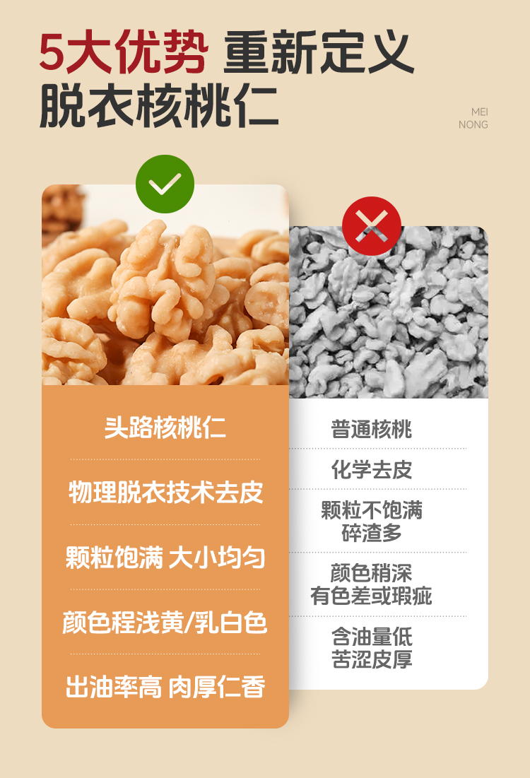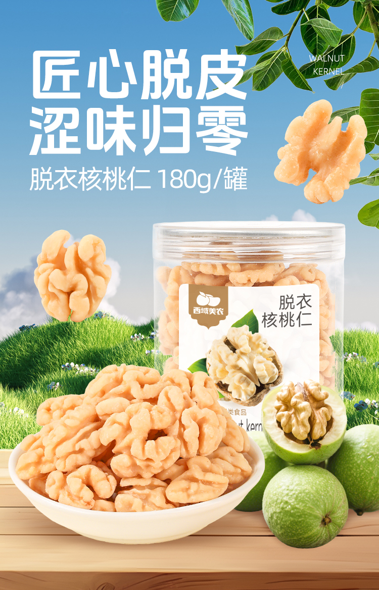 西域美农脱衣核桃仁新疆源头产区直采鲜果去皮工艺香脆不涩