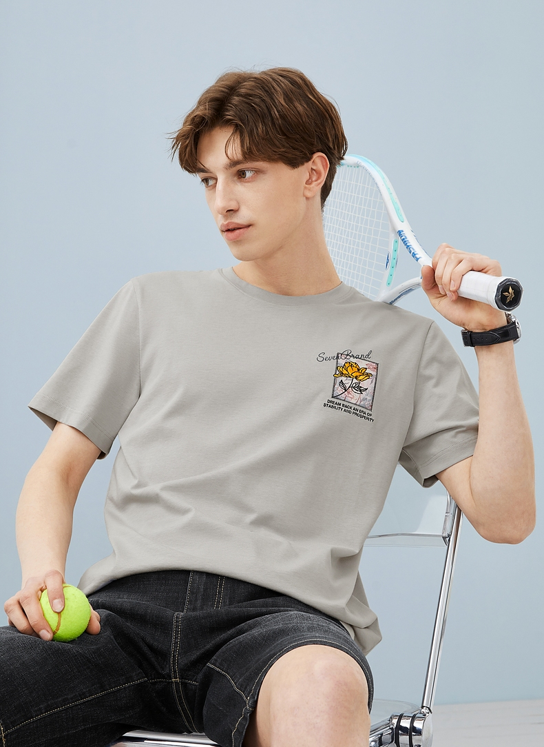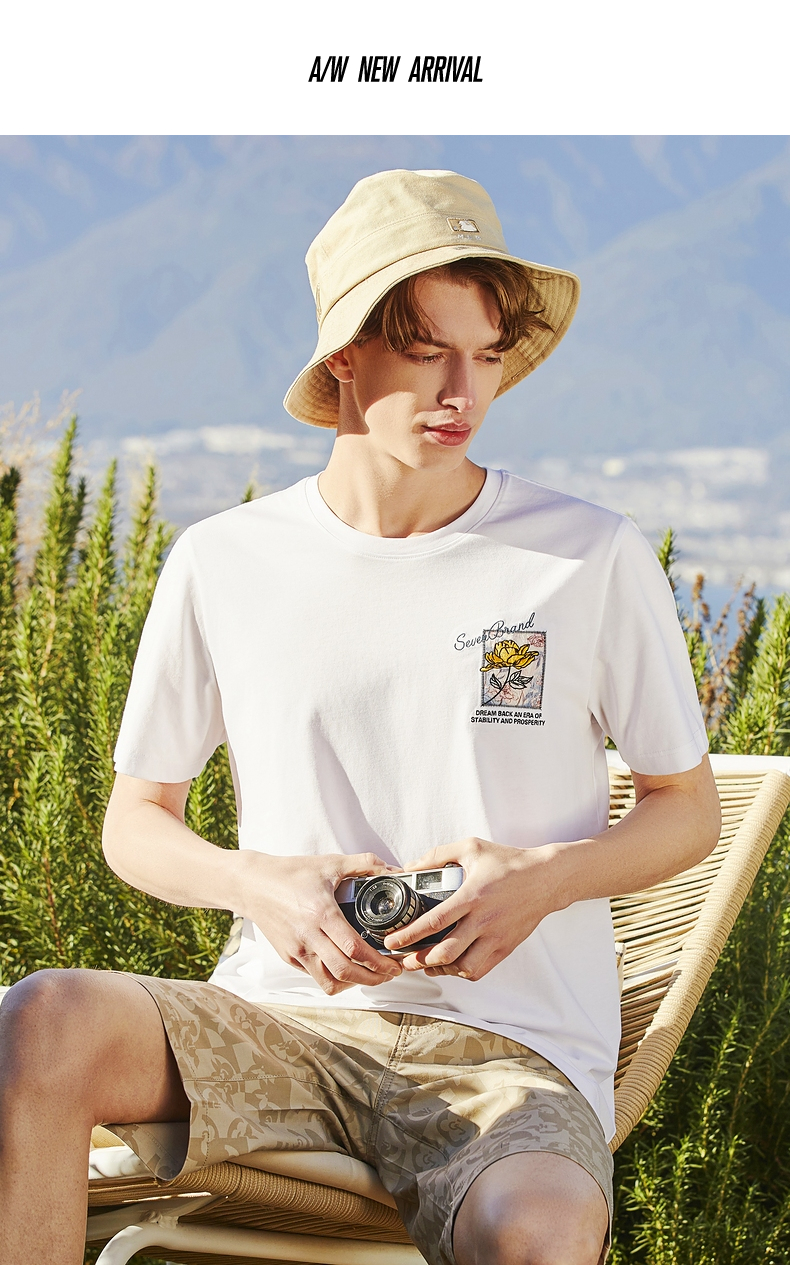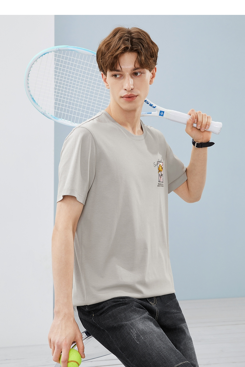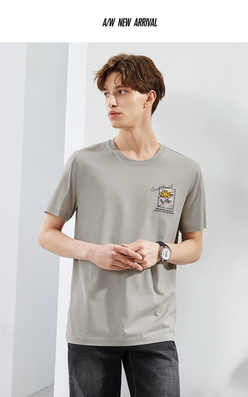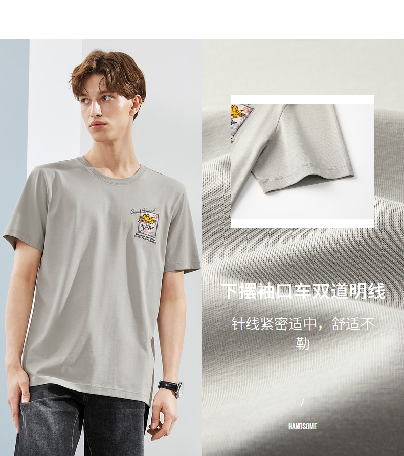 【冰氧吧】柒牌男士短袖T恤夏季凉感时尚休闲刺绣圆领短T上衣 124T71130