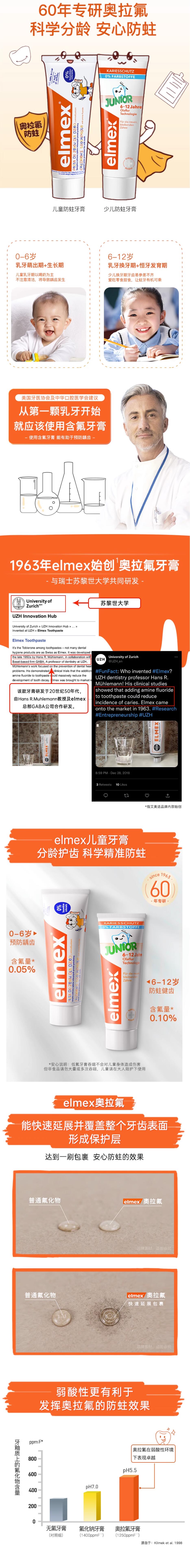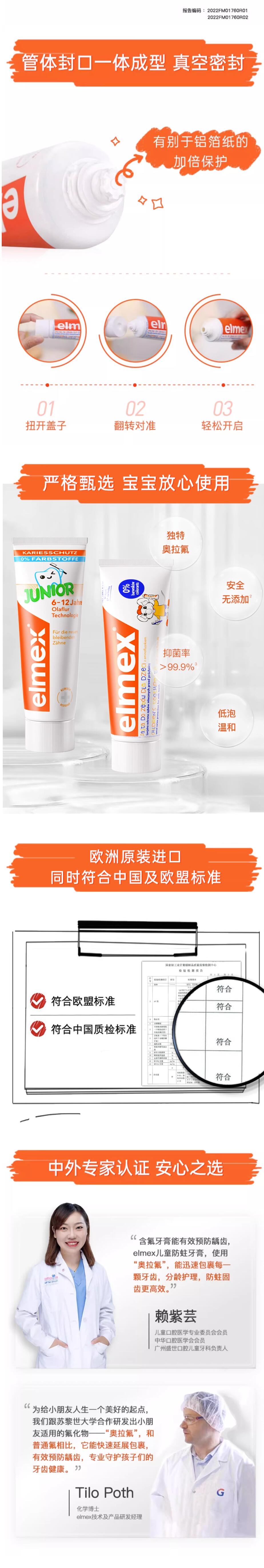 欧洲进口艾美适Elmex0-6岁/6-12岁儿童牙膏宝宝专用含氟型