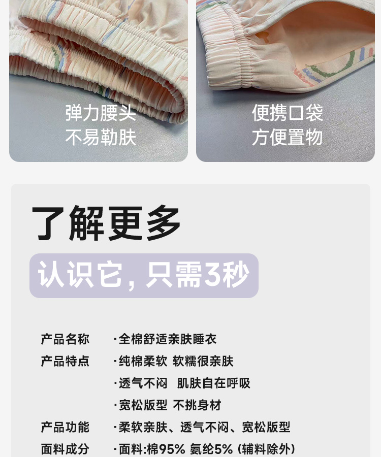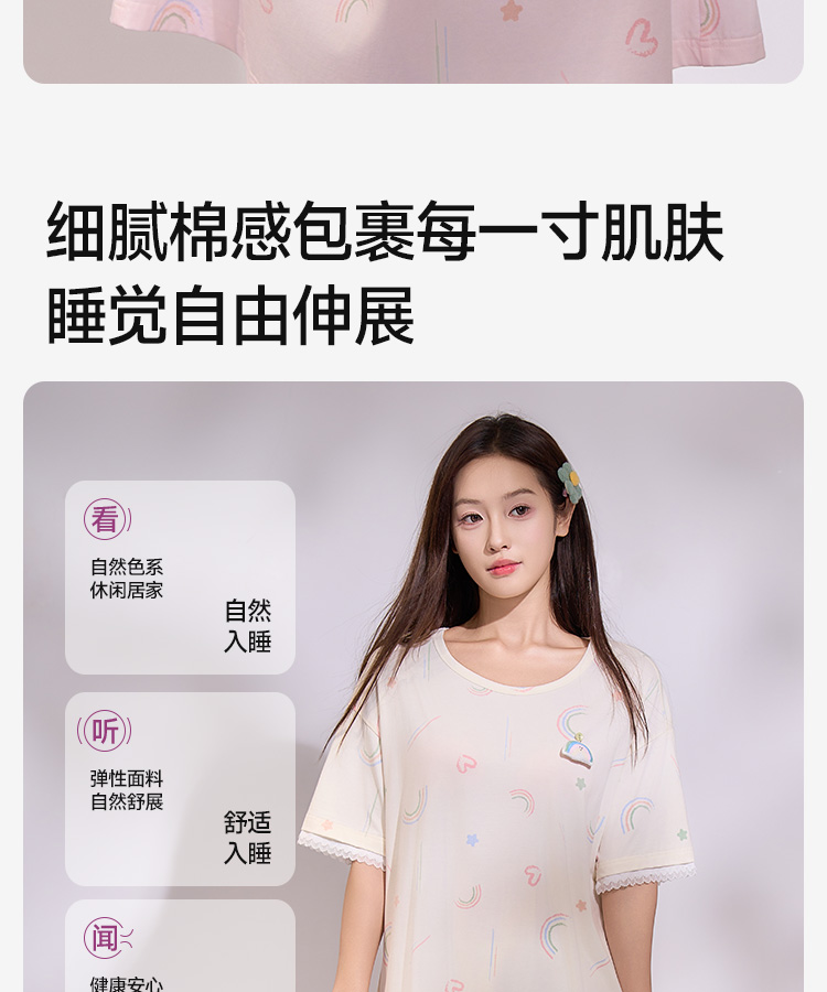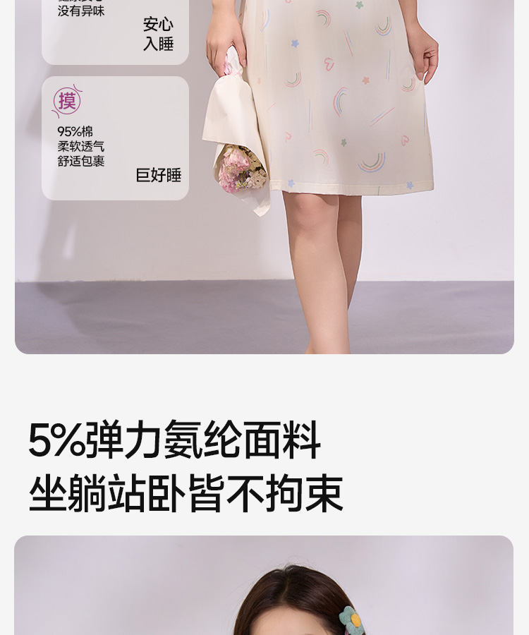 女士全棉舒适亲肤睡裙(幸运彩虹)