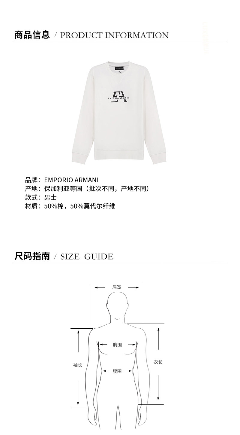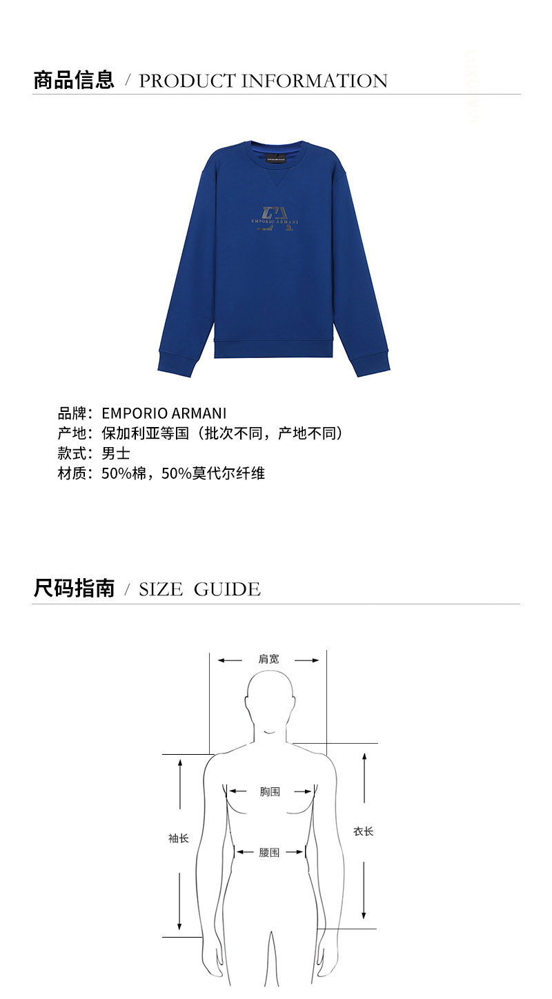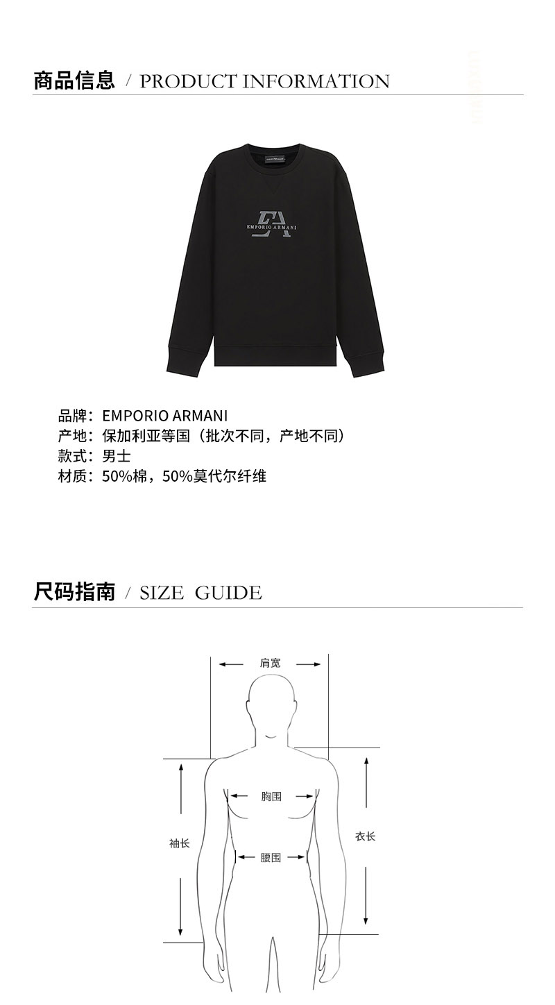 Emporio Armani/安普里奥阿玛尼 男卫衣 男士棉/莫代尔纤维圆领长袖卫衣运动衫 3K1MD6 1JTNZ