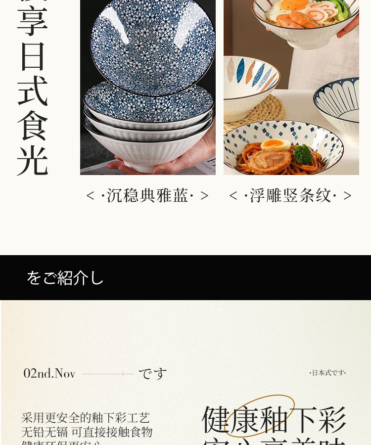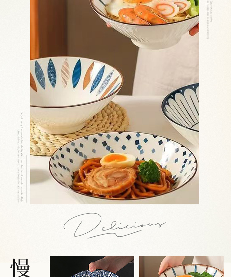 釉下彩日式斗笠面碗