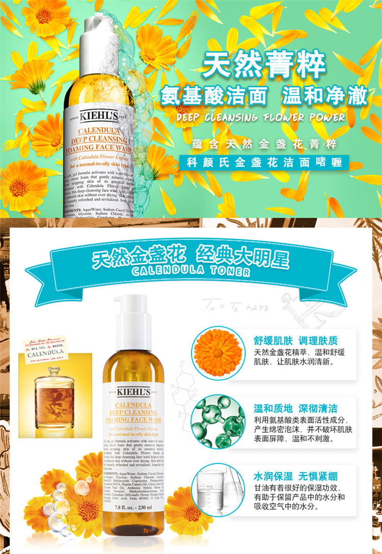 Kiehl's科颜氏金盏花洁面啫喱75-230-500ML