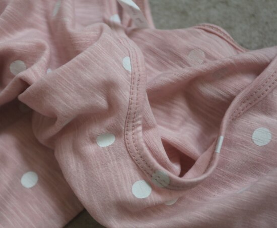 偏薄的竹节棉 能清晰看出小横纹的纱织纹路 四面微微弹 会有点微透肉