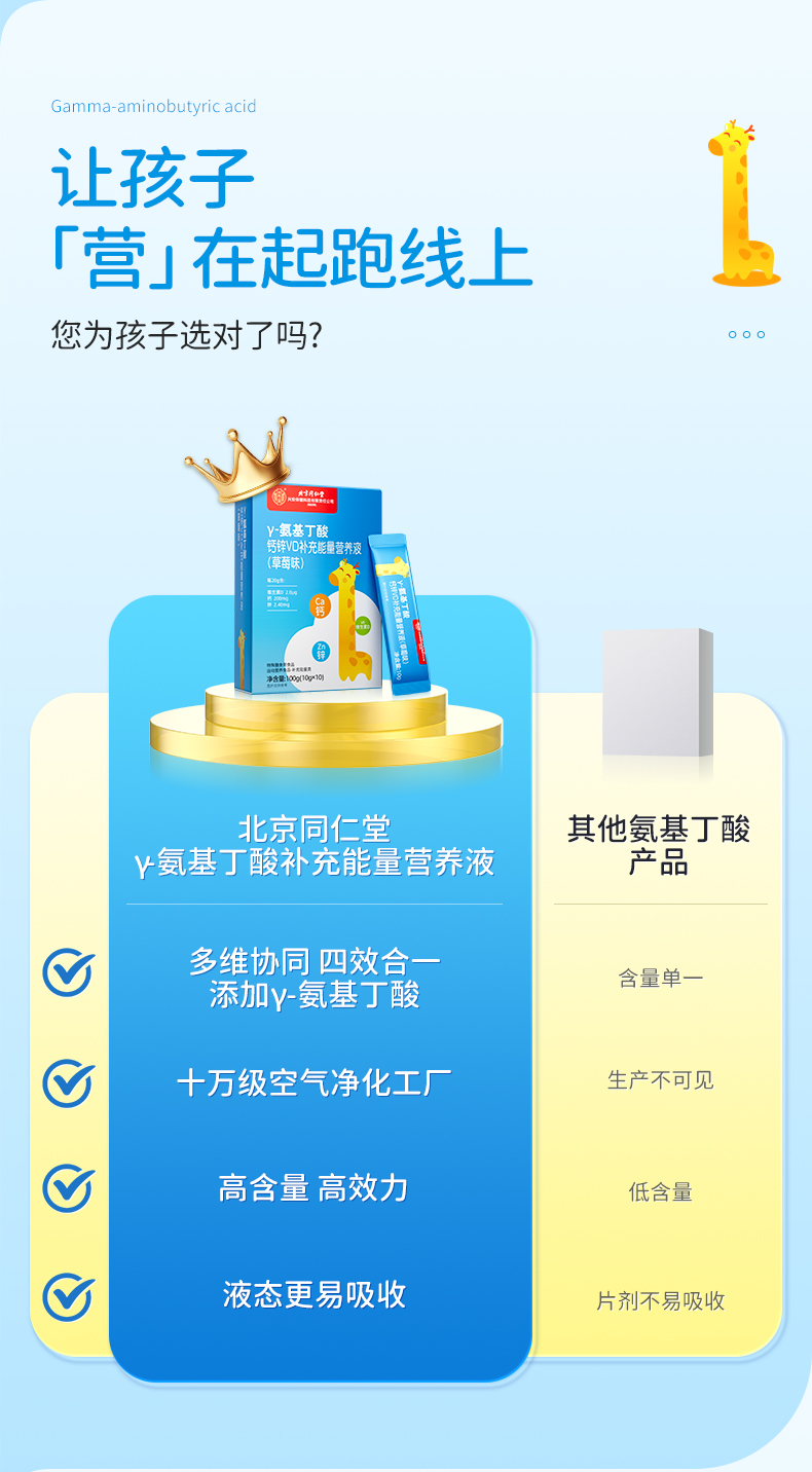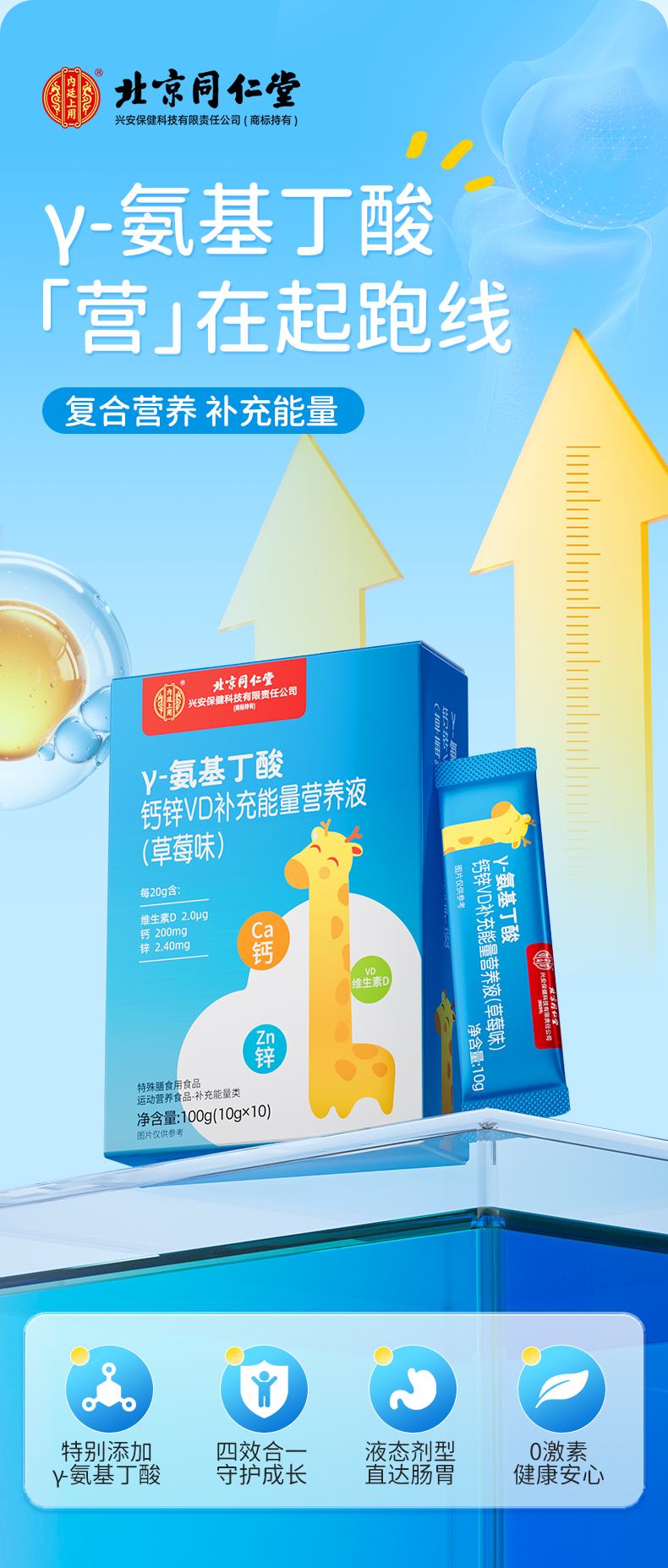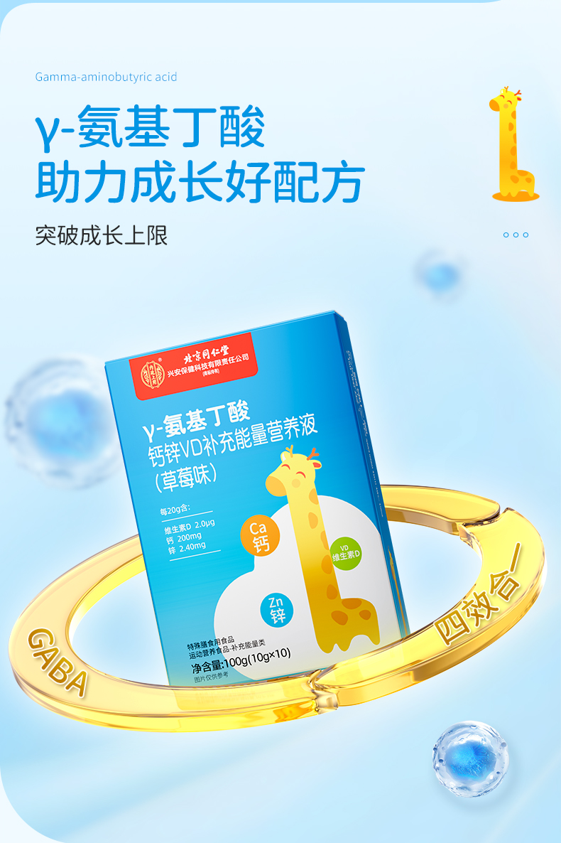 北京同仁堂 内廷上用 y-氨基丁酸 钙锌维生素D补充能量营养液10g*10