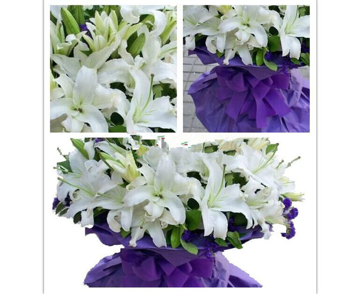 包装:紫色皱纹纸圆形包装,紫色丝带束扎