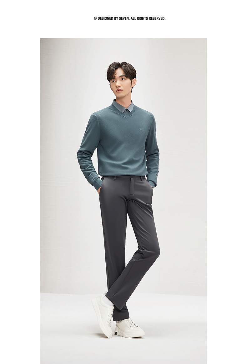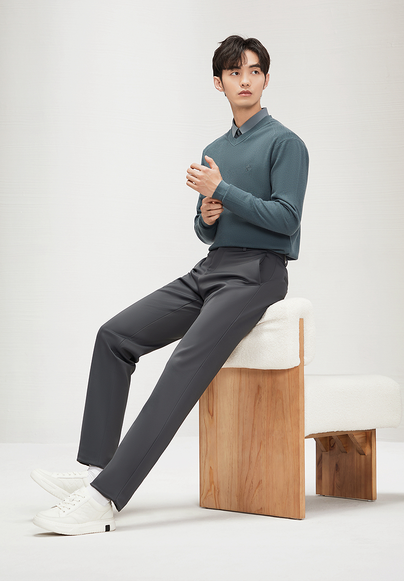 【含桑蚕丝】柒牌男装休闲裤男2024秋冬新款商务百搭修身直筒长裤 127H71040