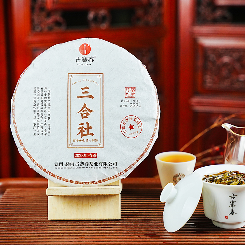 三合社跟易武其他的村落还不一样,大叶种为主要品种。基本上都是乔木为主,且没有过度修剪的痕迹。三合社的古树在易武地区是一个另类,是易武地区苦涩味最重的,特别是涩感比其他的地区要明显得多,不过很快能化开;原始森林中没有经过认为干预,内含物质十分丰富。