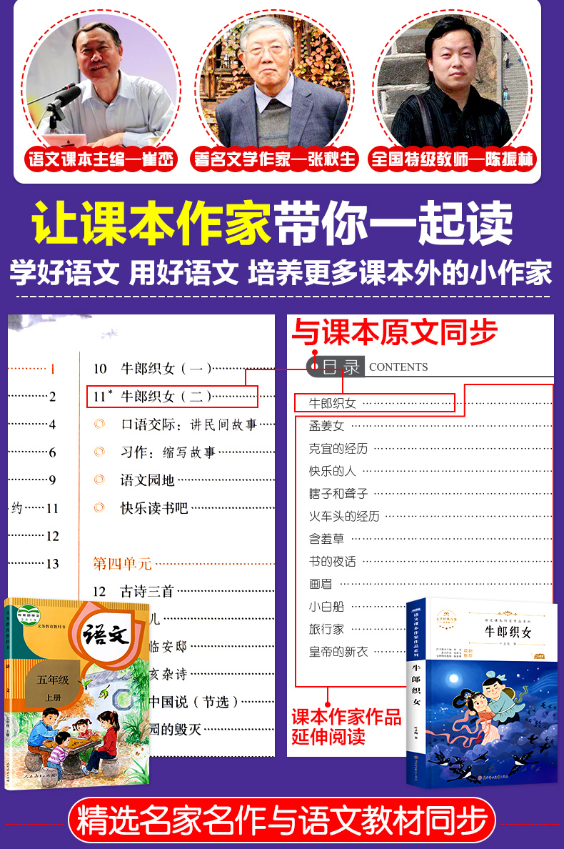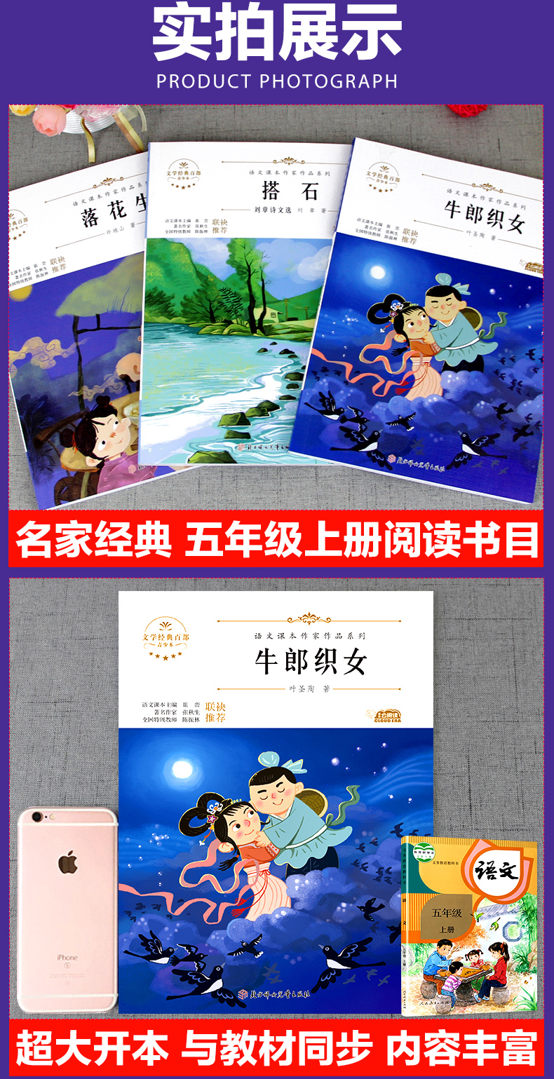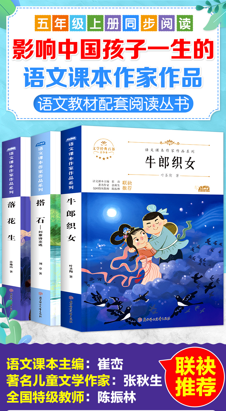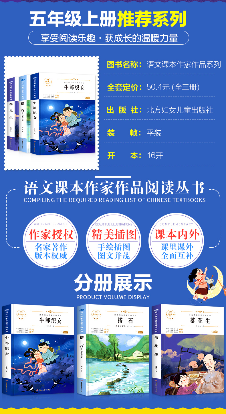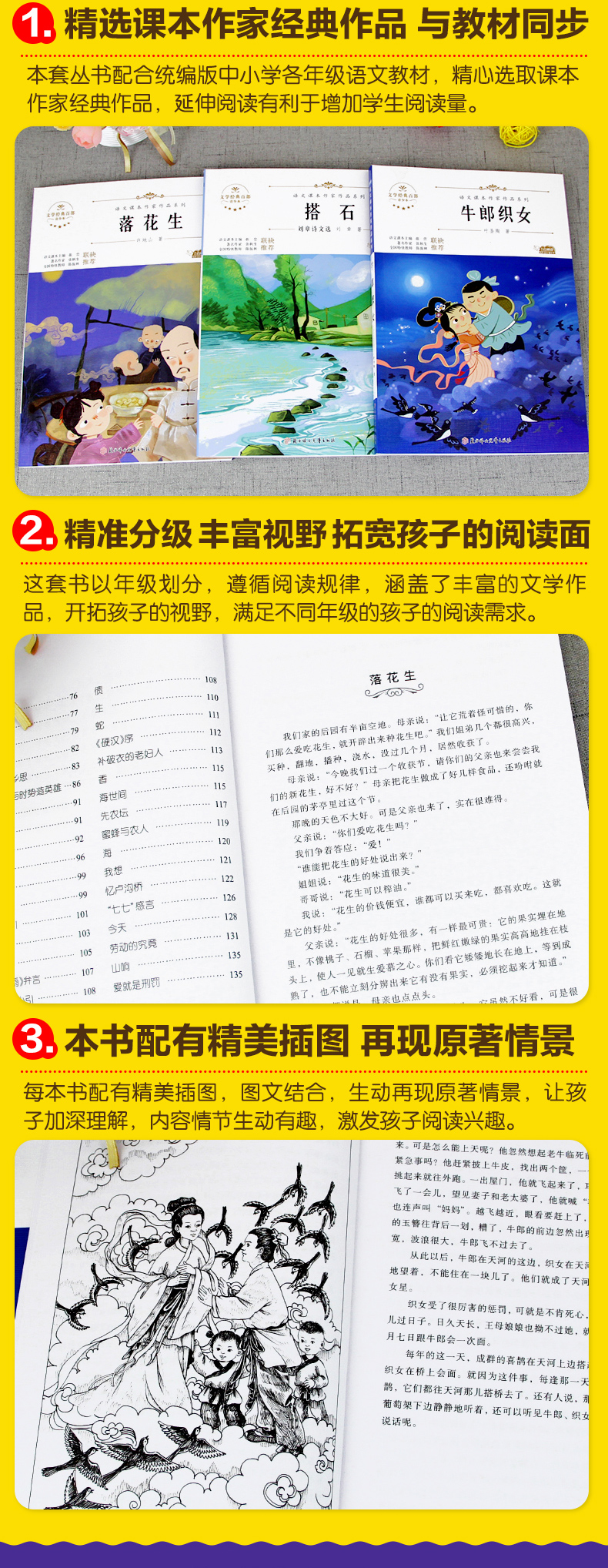 全套3册 五年级上册学期必读课外书 落花生 搭石 牛郎织女 儿童故事书10岁以上文学作品图书大全 5年级读物推荐小学生课外阅读书籍