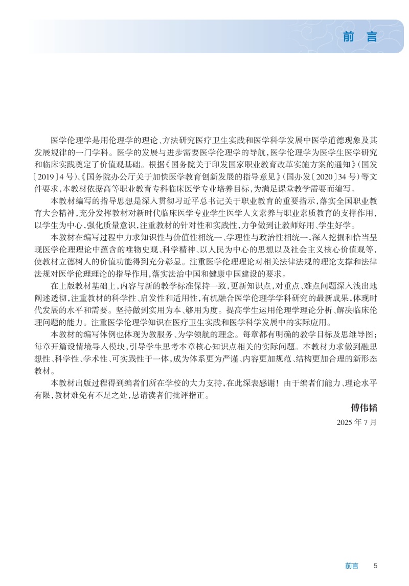 医学伦理学 第4四版 十四五规划教材全国高等职业教育专科教材 傅伟韬 主编 供临床医学专业用 9787117375634 人民卫生出版社