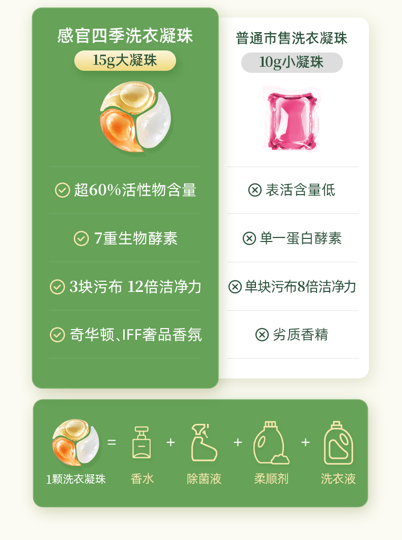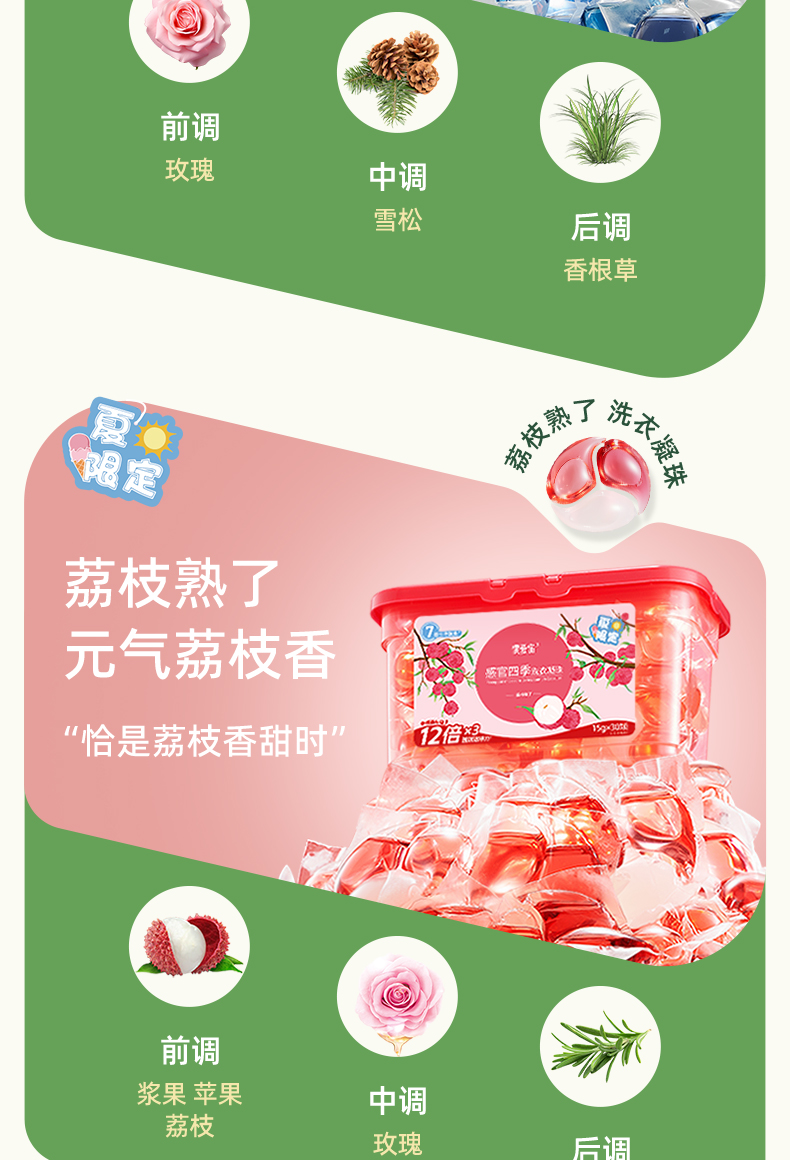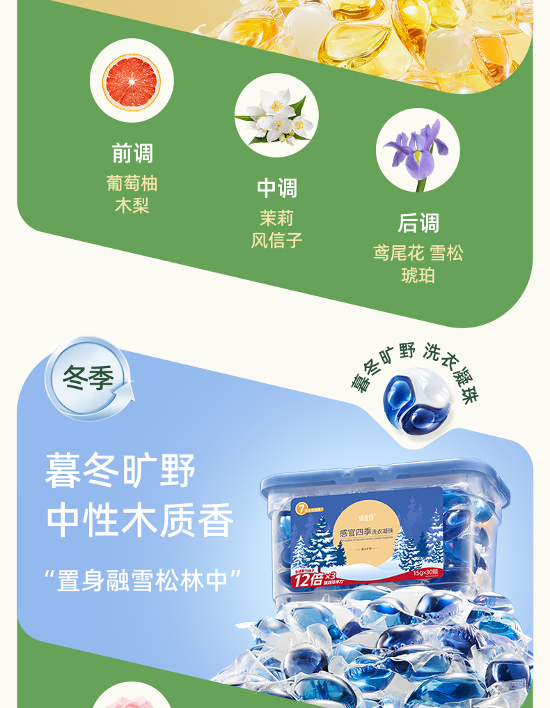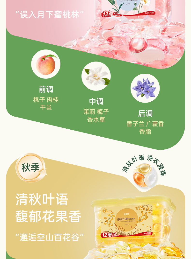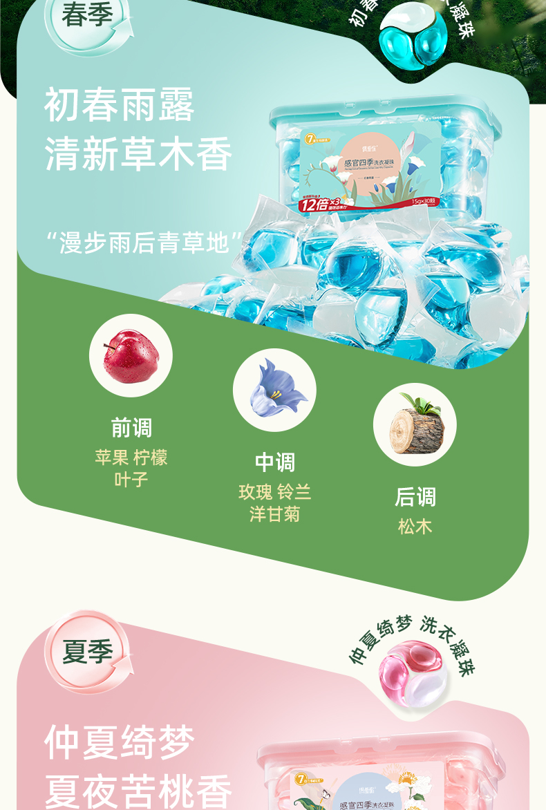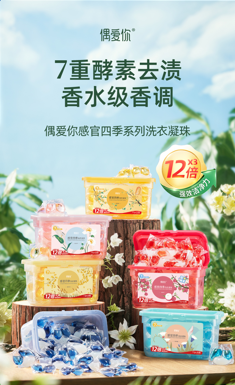 【供货】偶爱你感官四季洗衣凝珠7重酵素12倍洁净香水级香调