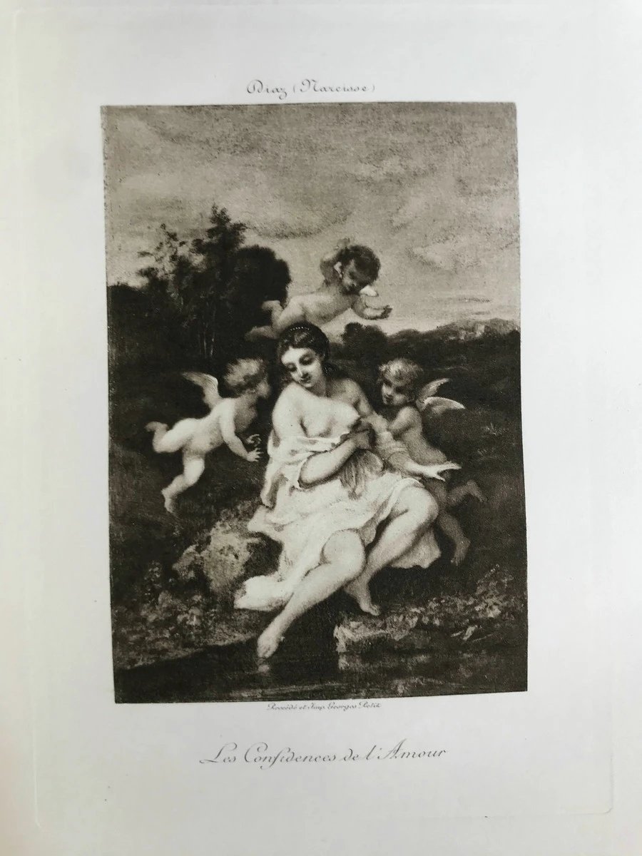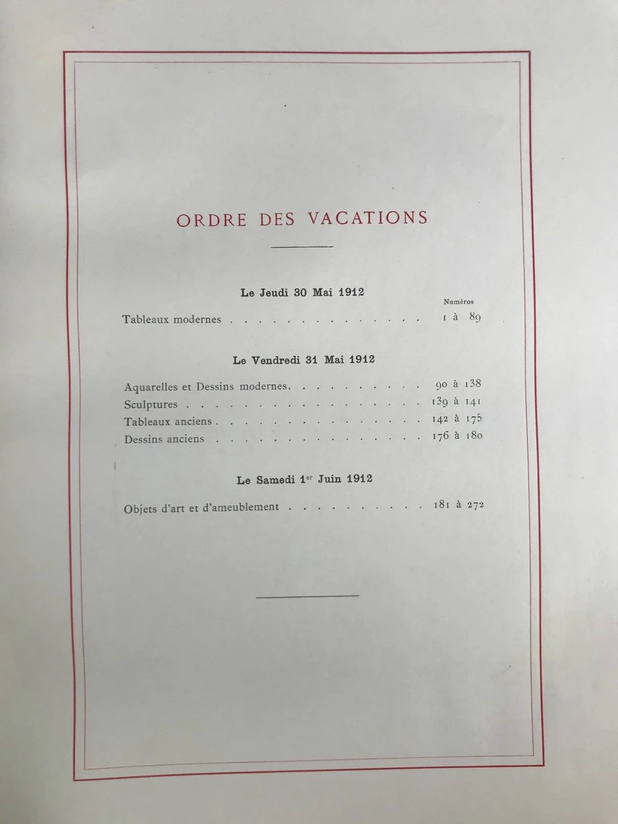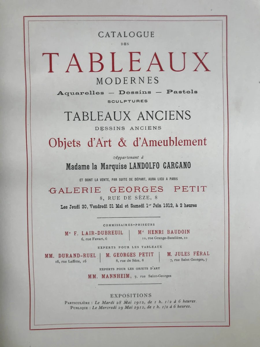 本书为法国著名收藏家卡卡诺侯爵夫人所珍藏的现代绘画、水彩画、素描、粉彩画、雕塑、古画、装饰艺术和家具图像的目录,在册珍品200余种,部分配以原品照相腐蚀凹版画,细节精美。