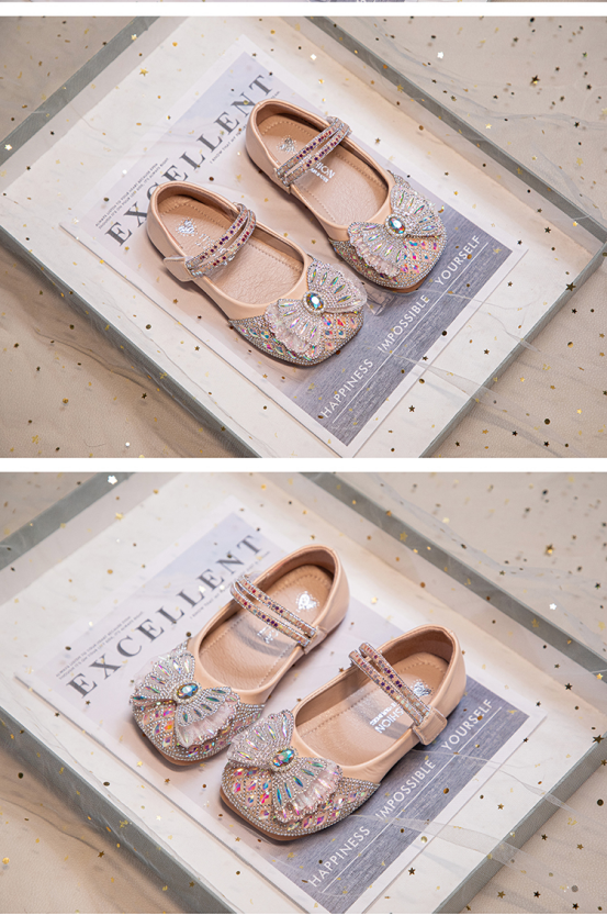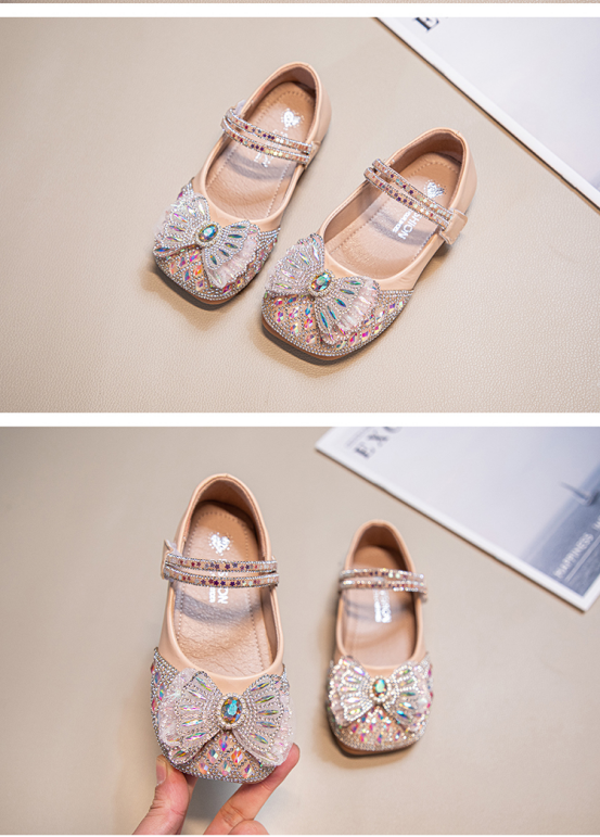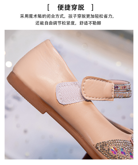 公主鞋最经典就是闪耀鞋身,水钻点缀, 蝴蝶结非常增艳,极大的满足小女孩的公主梦。