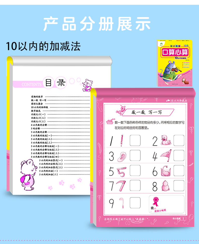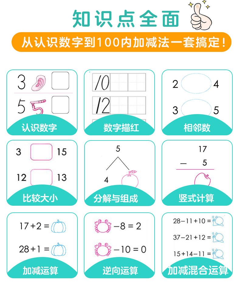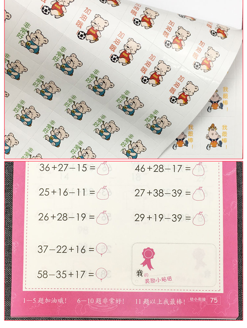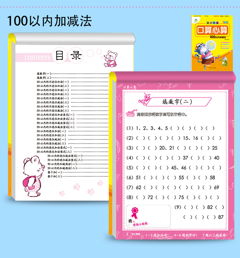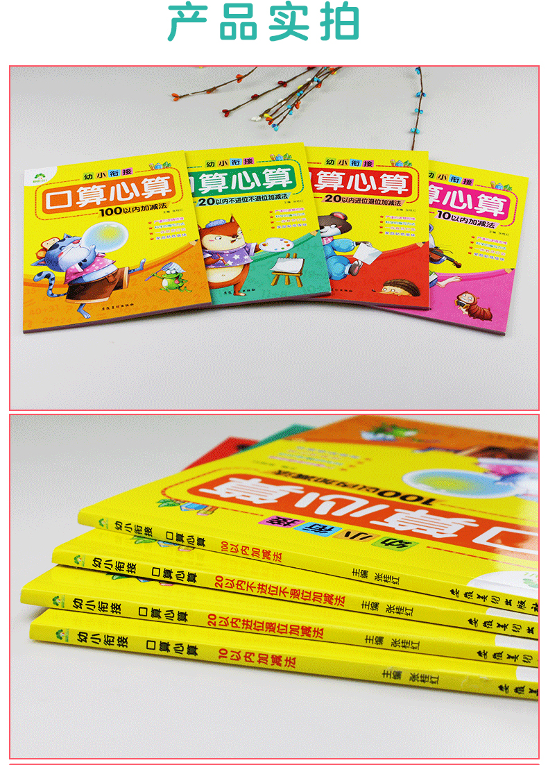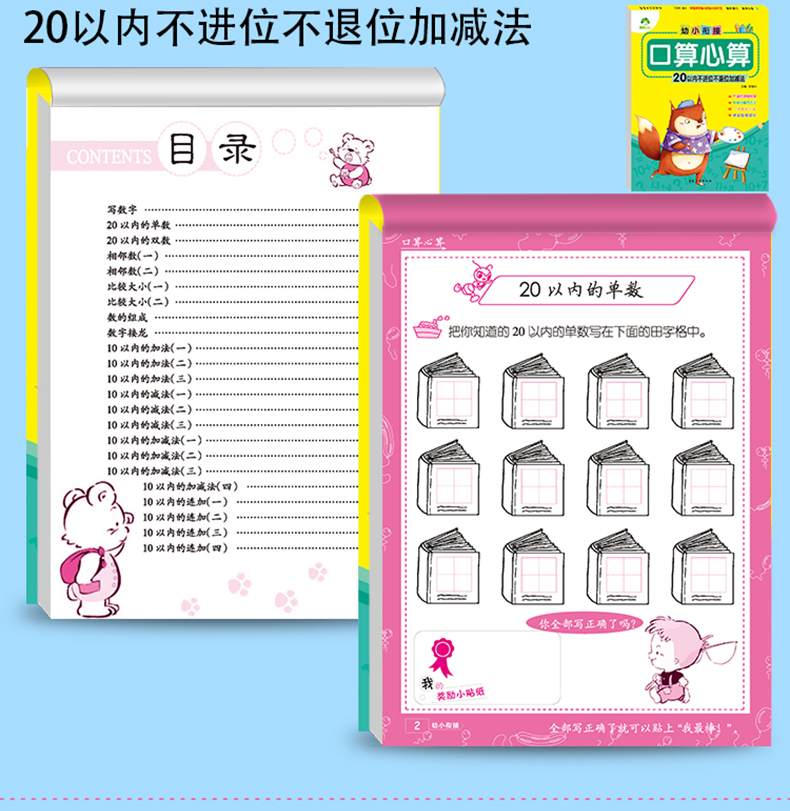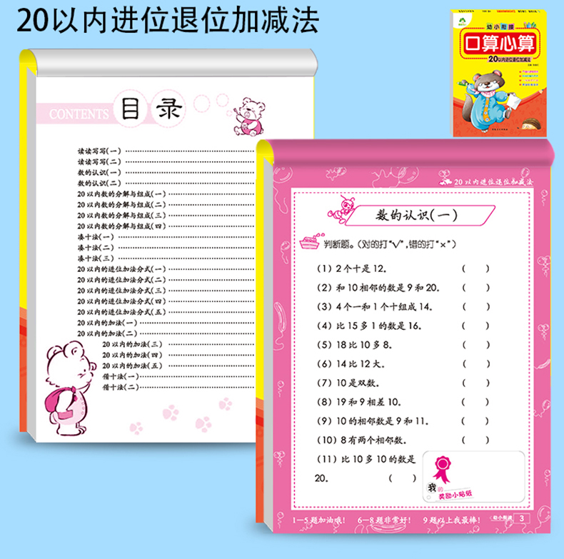爱德少儿幼小衔接口算心算题卡数学加法减法口算题卡大班10/20/100二十以内的进退位加减法混合训练练习册本天天练学前班算术本算术题