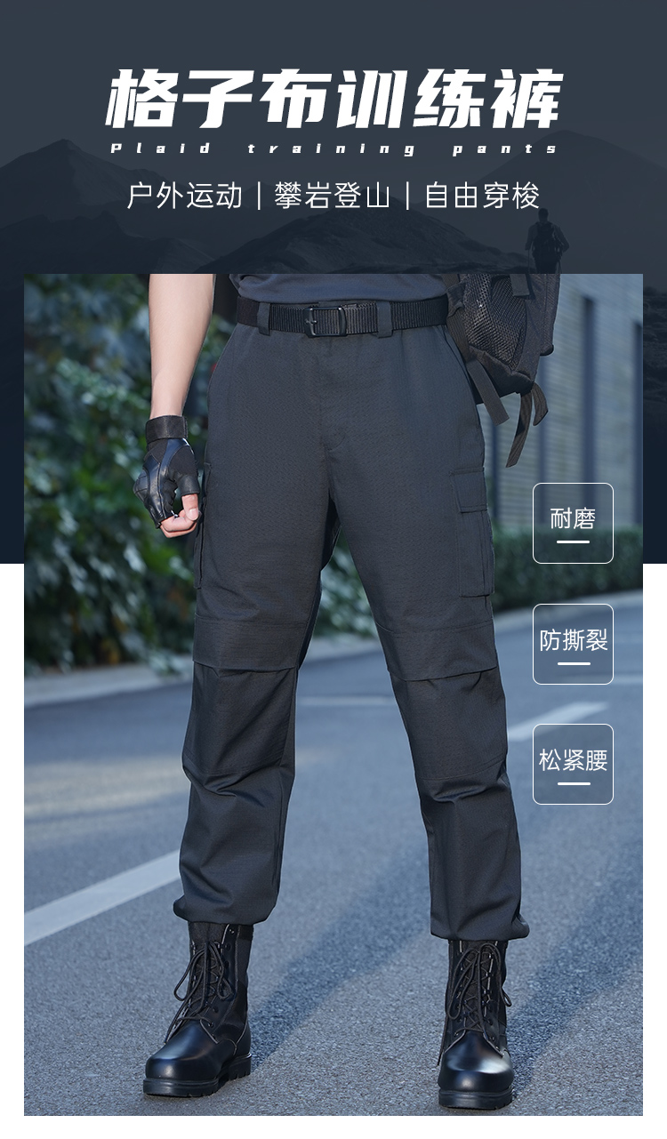 【实付满399送保温杯】【格子布训练裤】户外运动弹力长裤 透气快干战术裤K001