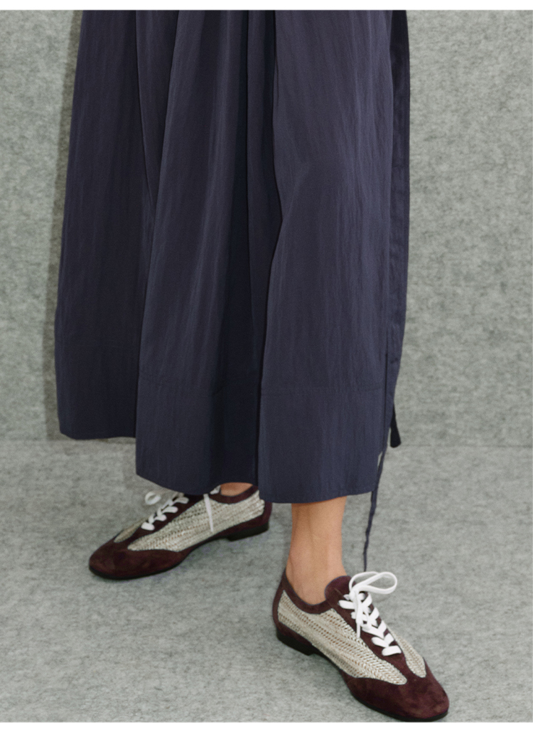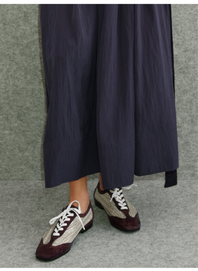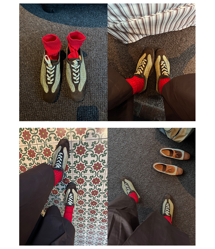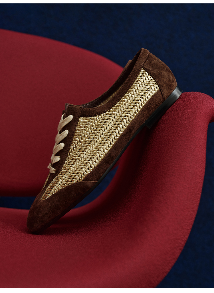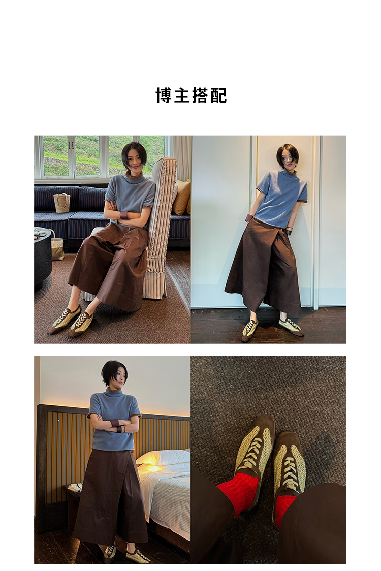 HIDEMI 进口巧克力色麂皮拼接编织复古德训绑带球鞋