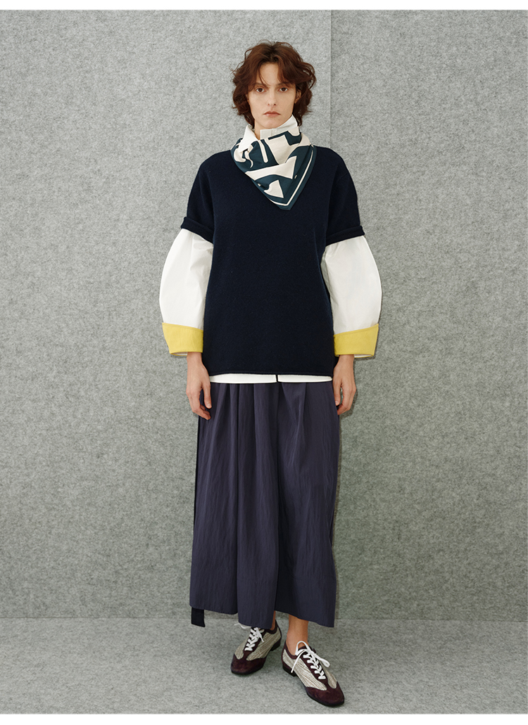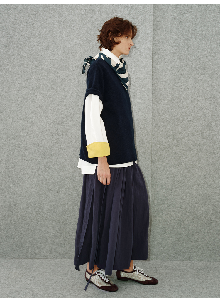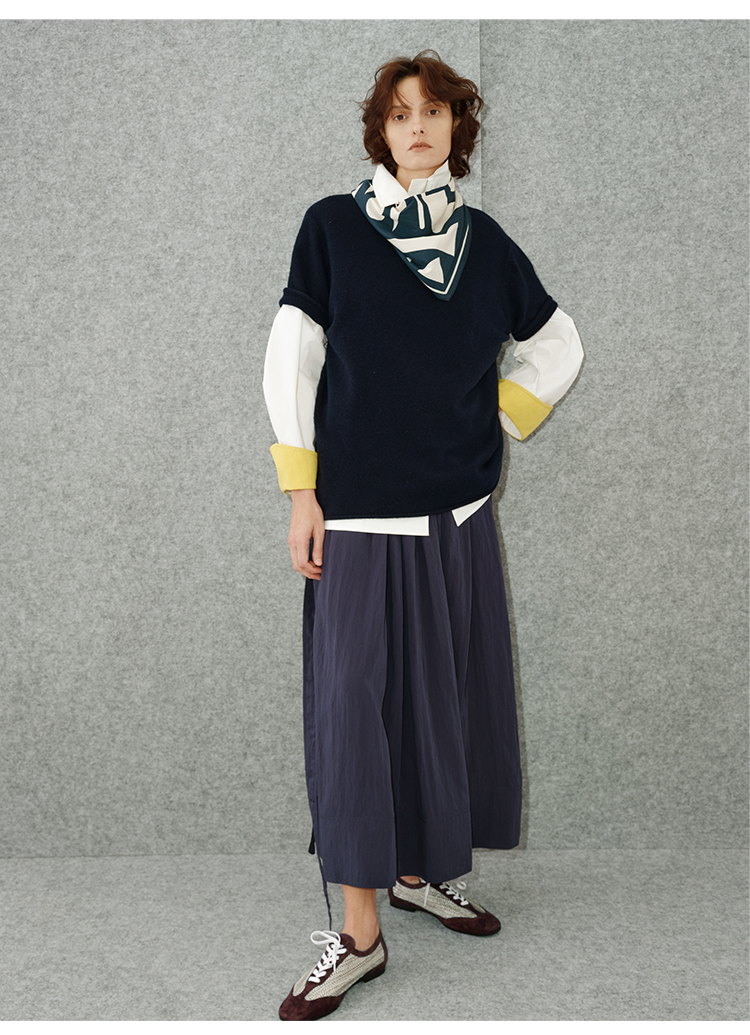 HIDEMI 简约拉链设计感自然棉质三件套套装 苹果绿衬衫/苹果绿茧型半身裙/雾霾蓝衬衫/雾霾蓝茧型半身裙/苹果绿短背心/雾霾蓝短背心