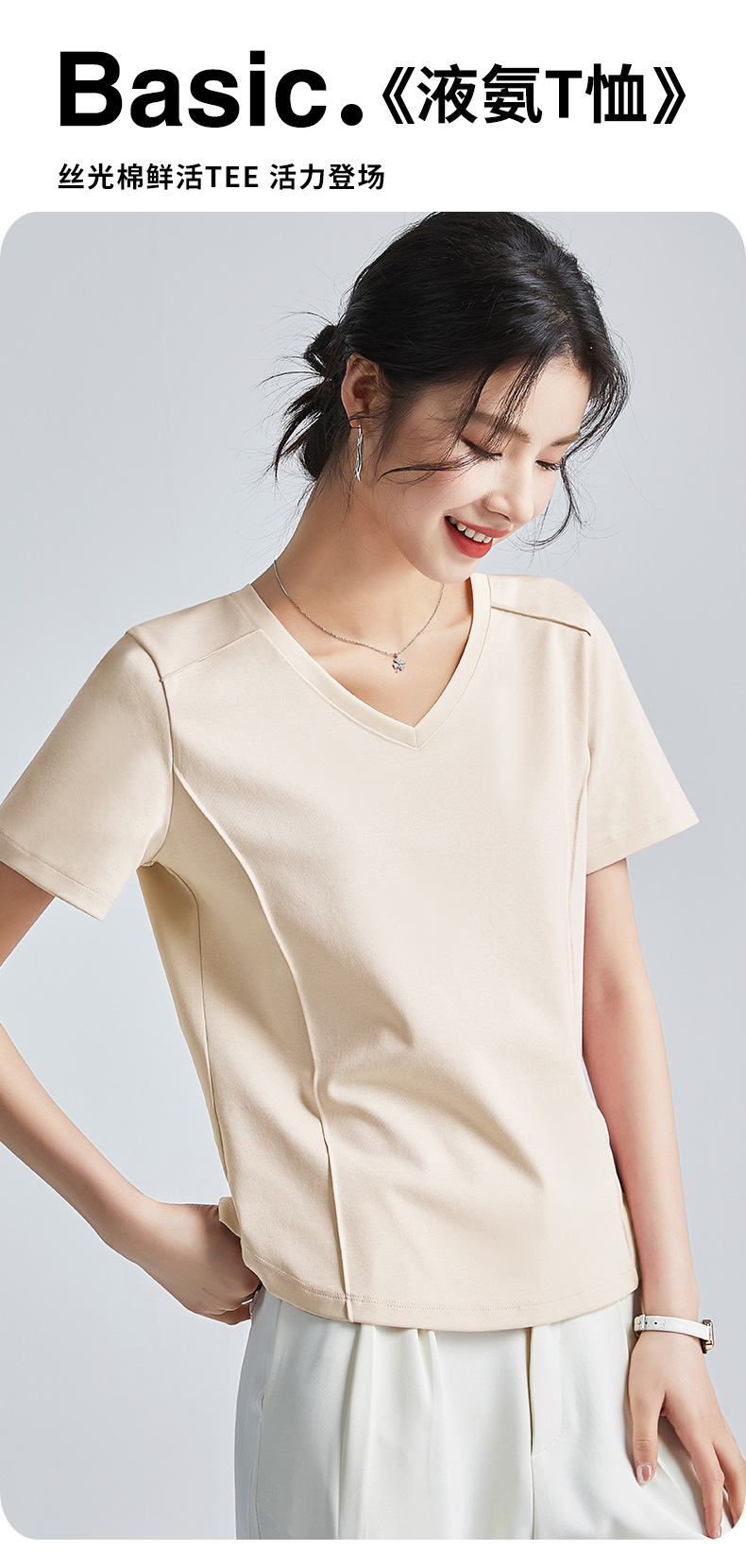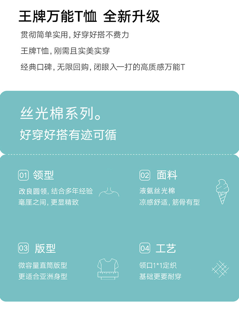 【119元2件】【商城大牌品质】80S液氨丝光棉短袖 凉感新疆棉圆领T恤