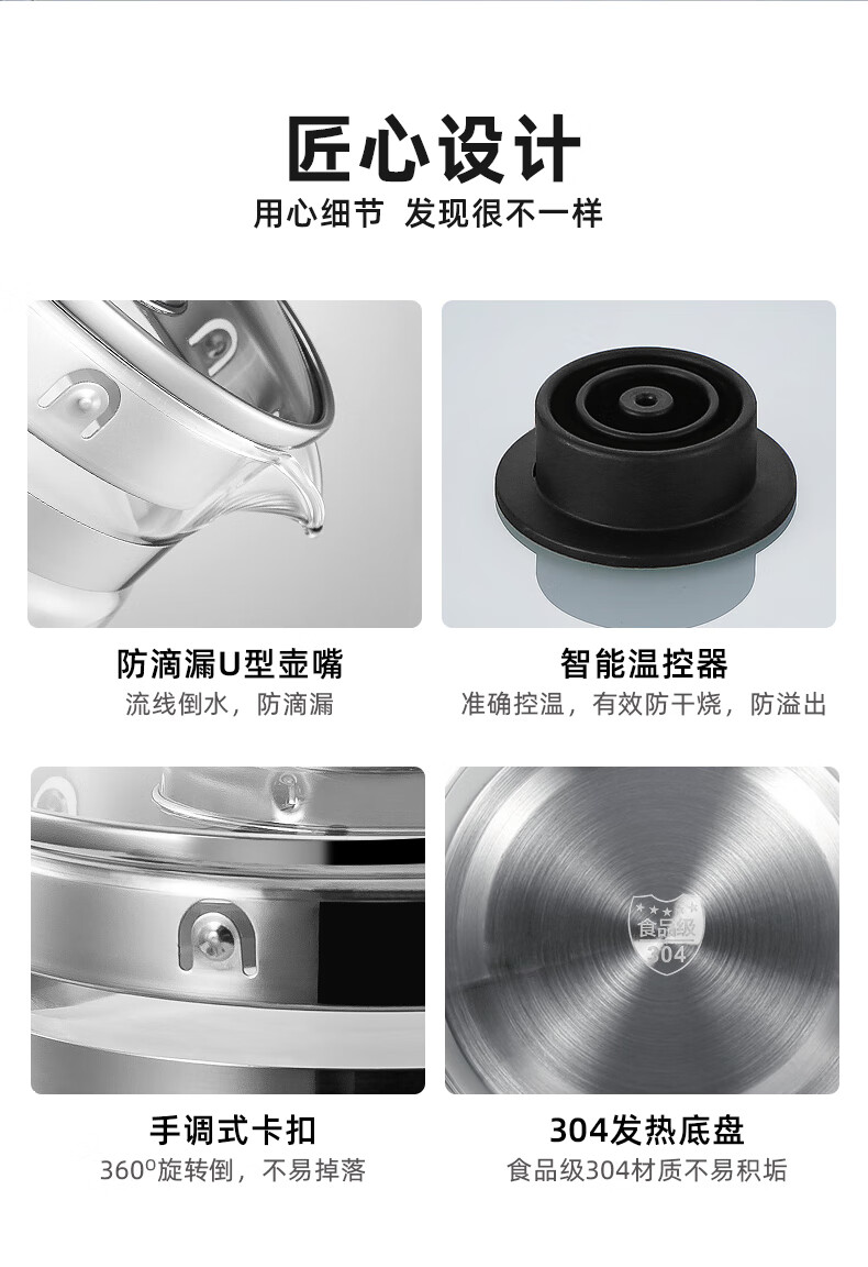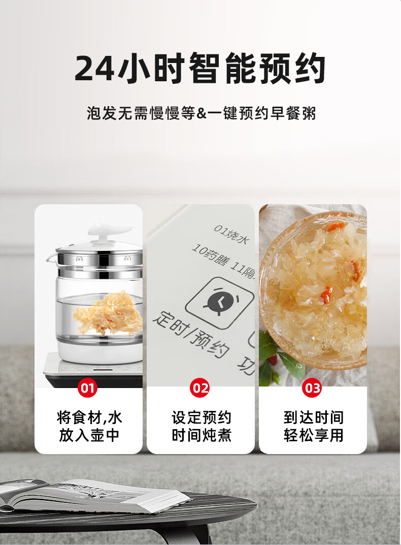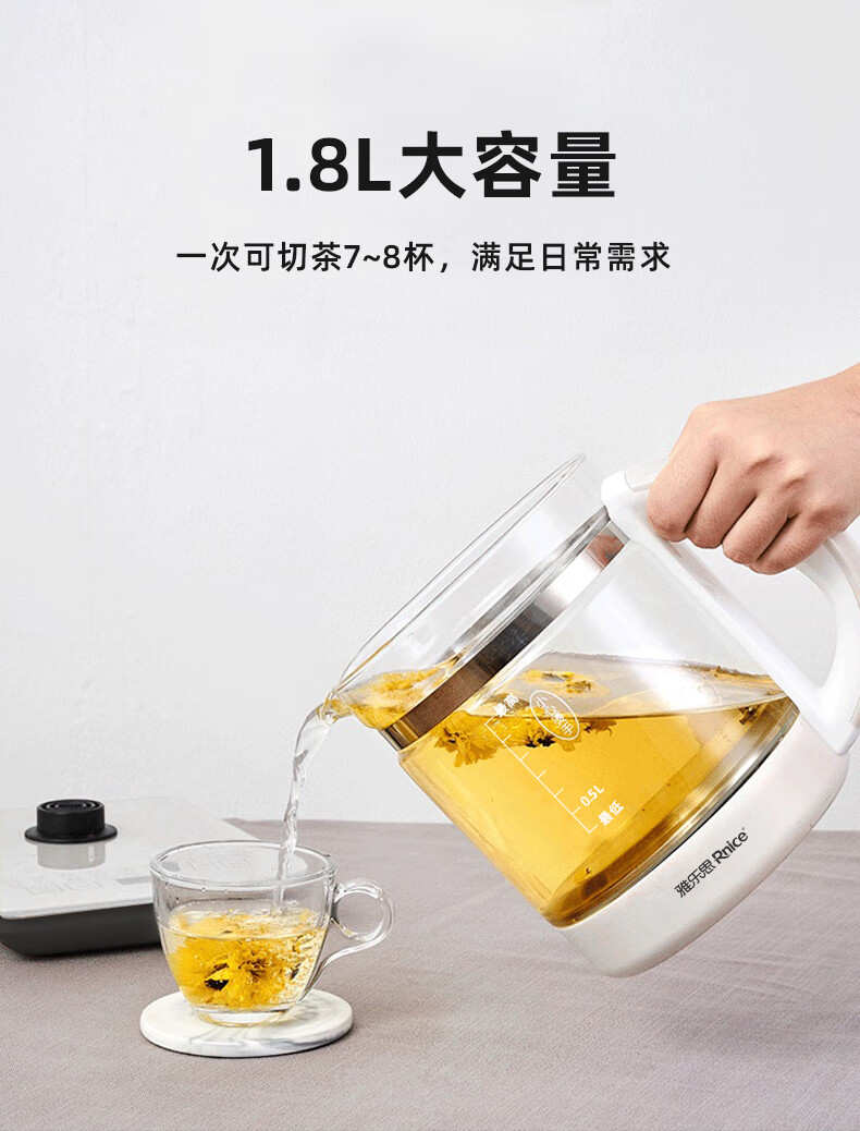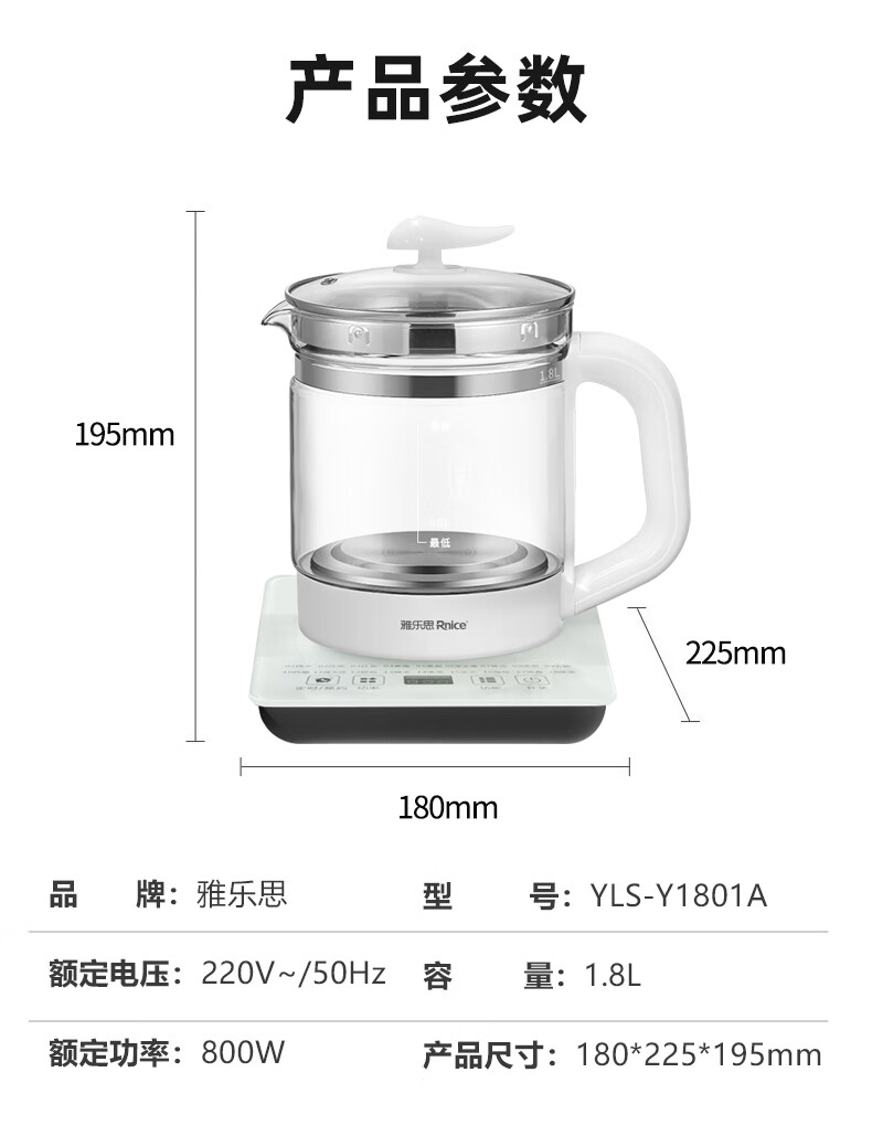 雅乐思养生壶1.8L多功能升级高硼硅玻璃养生壶 YLS-Y1801A 1.8L