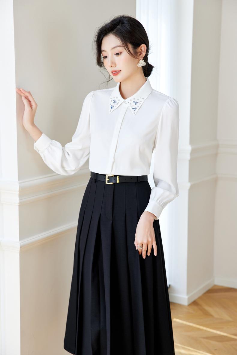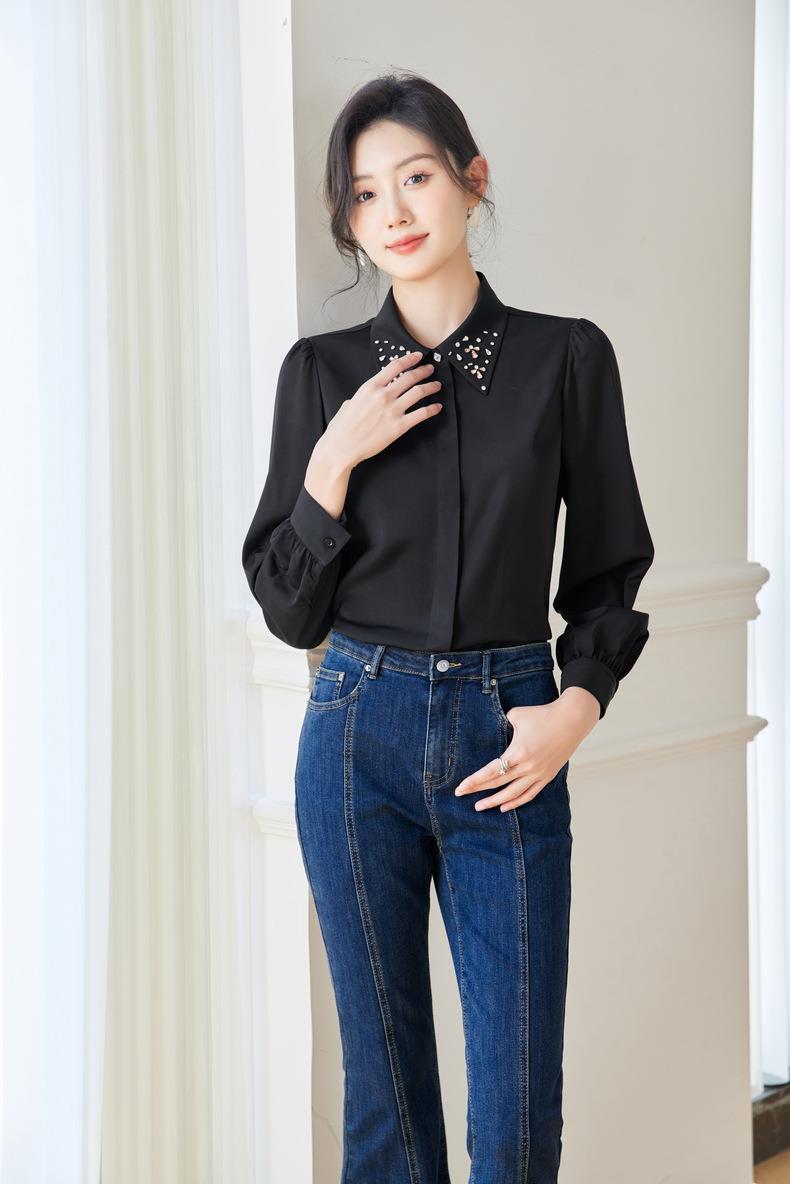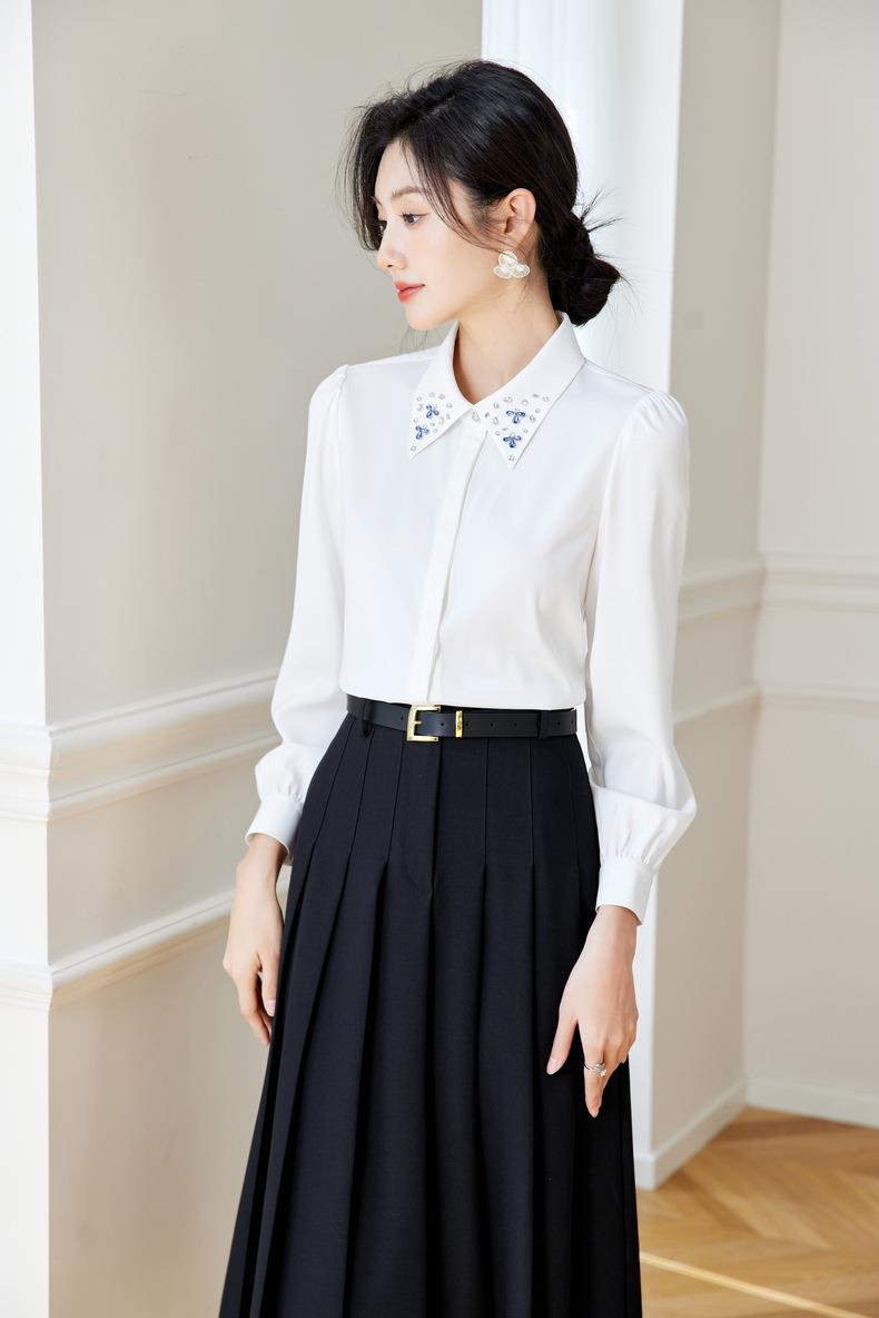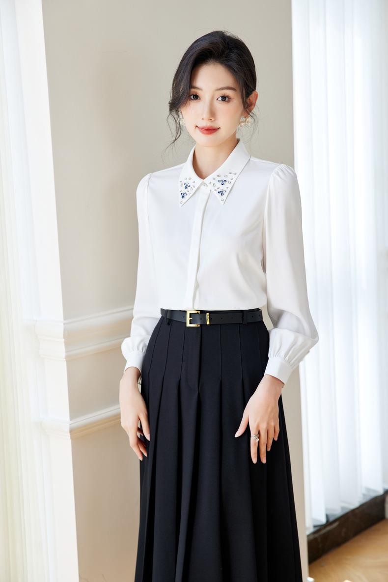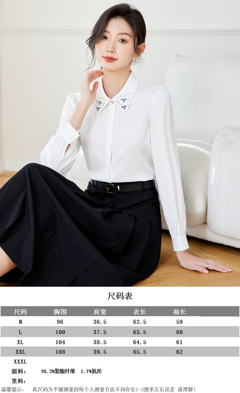 钉钻白色女衬衣2024春装新款职业洋气小衫长袖雪纺衫0590