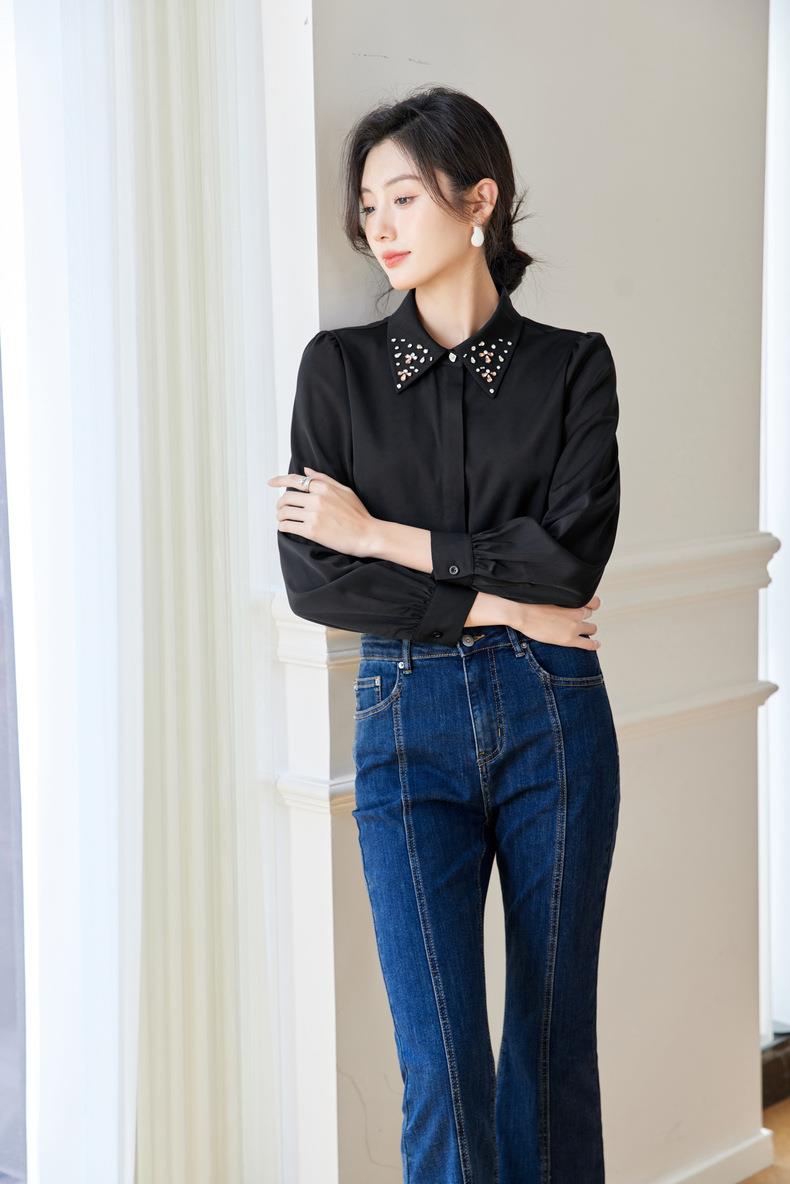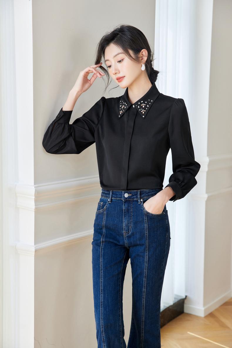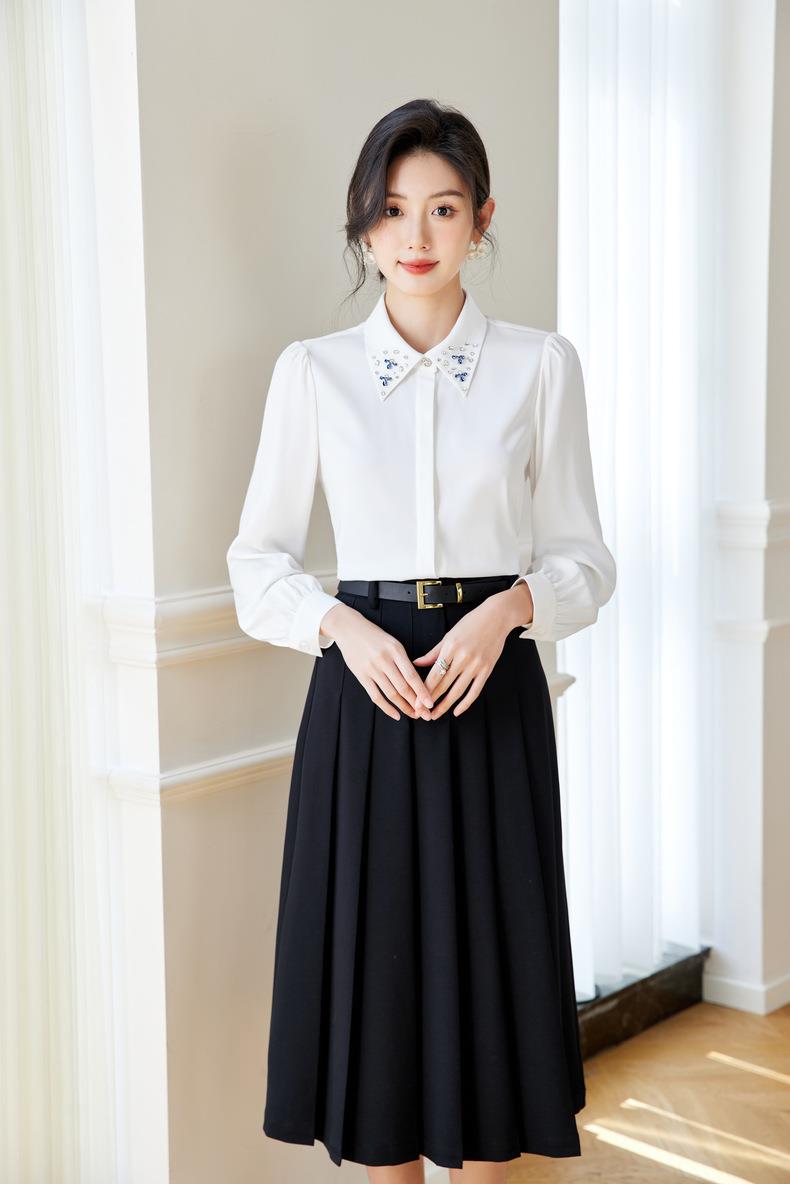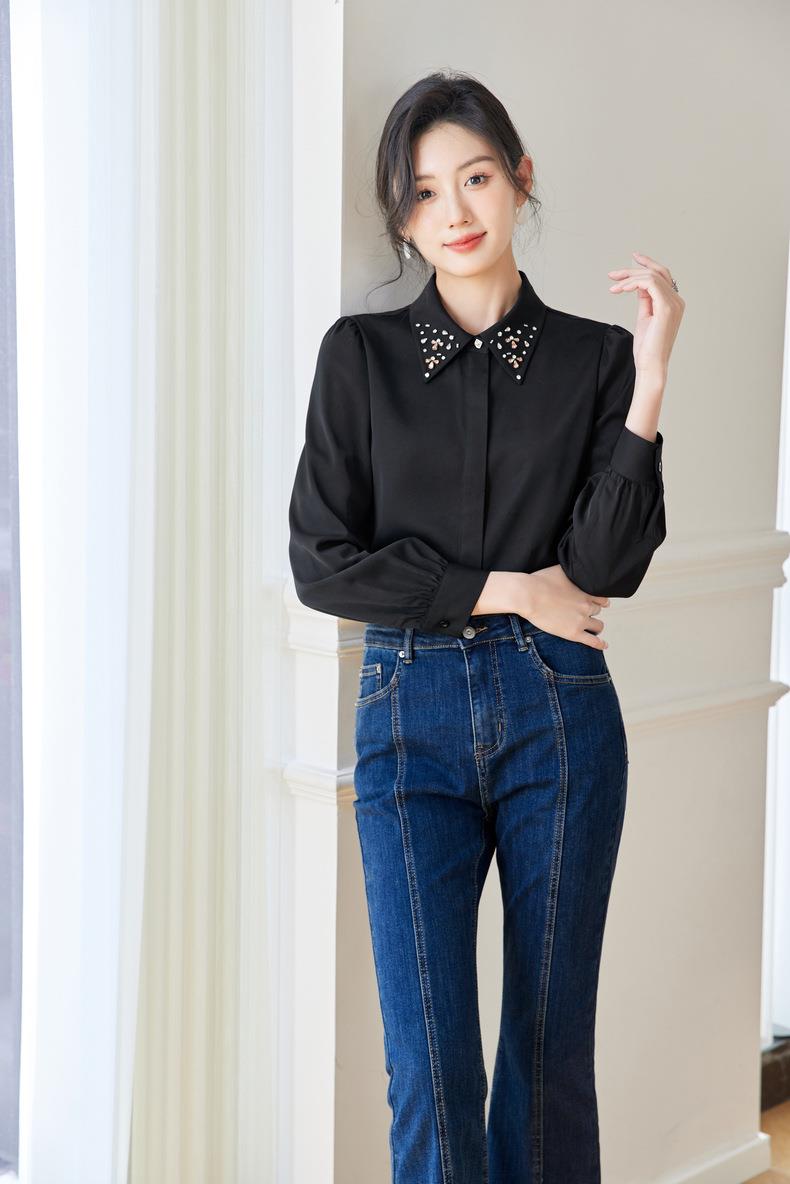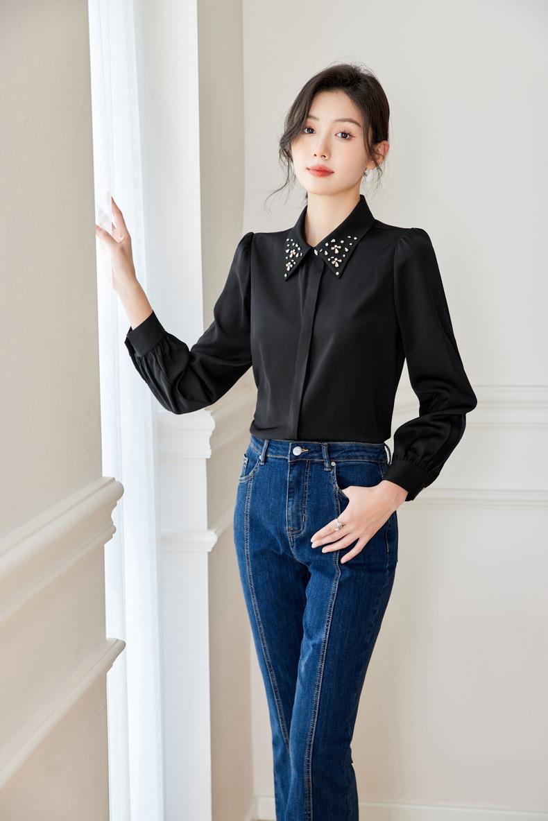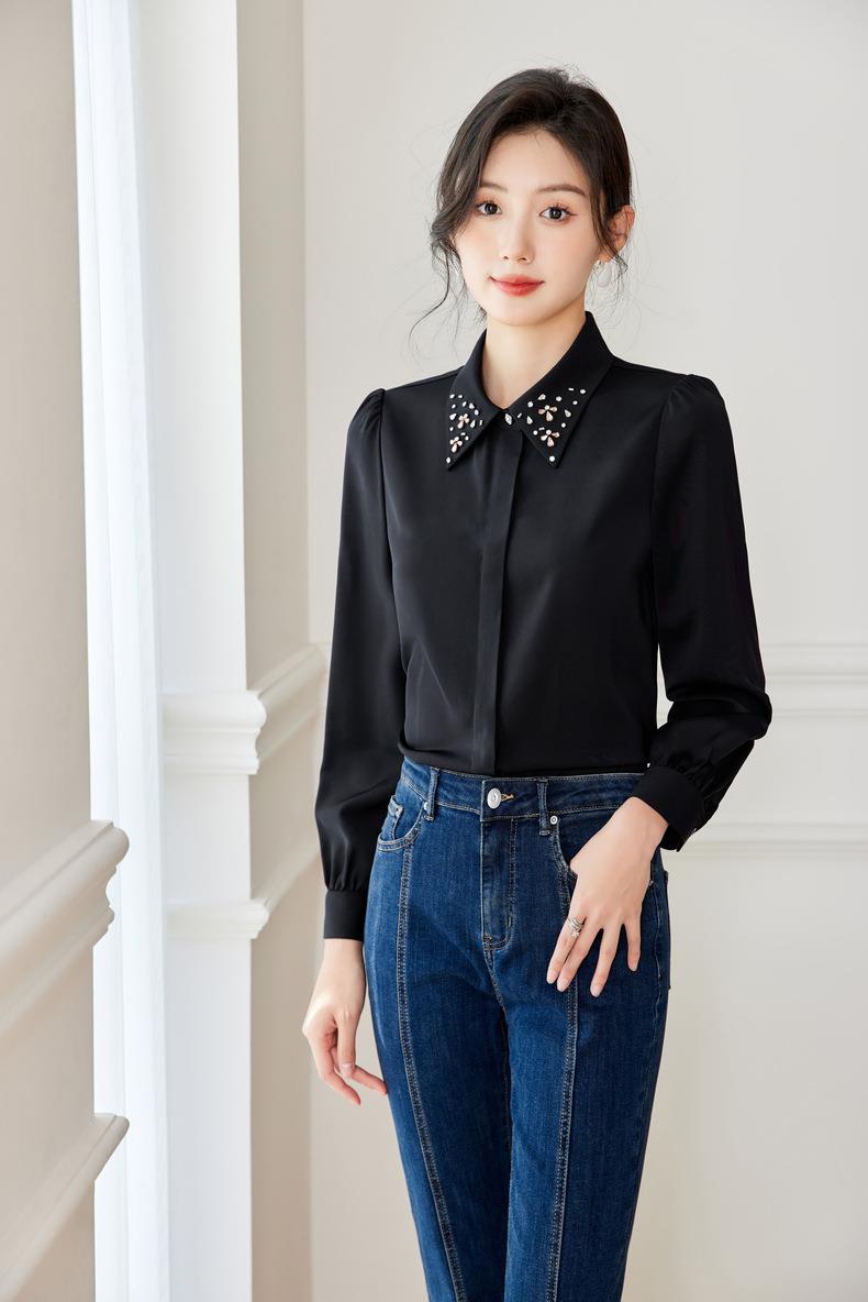 钉钻白色女衬衣2024春装新款职业洋气小衫长袖雪纺衫0590