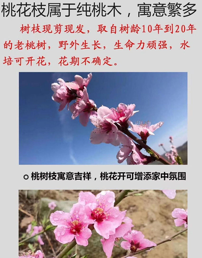 【桃花朵朵开 幸福处处来】桃花枝遇水开花书房水培干枝花卉带花苞客厅桃树枝条鲜枝水养