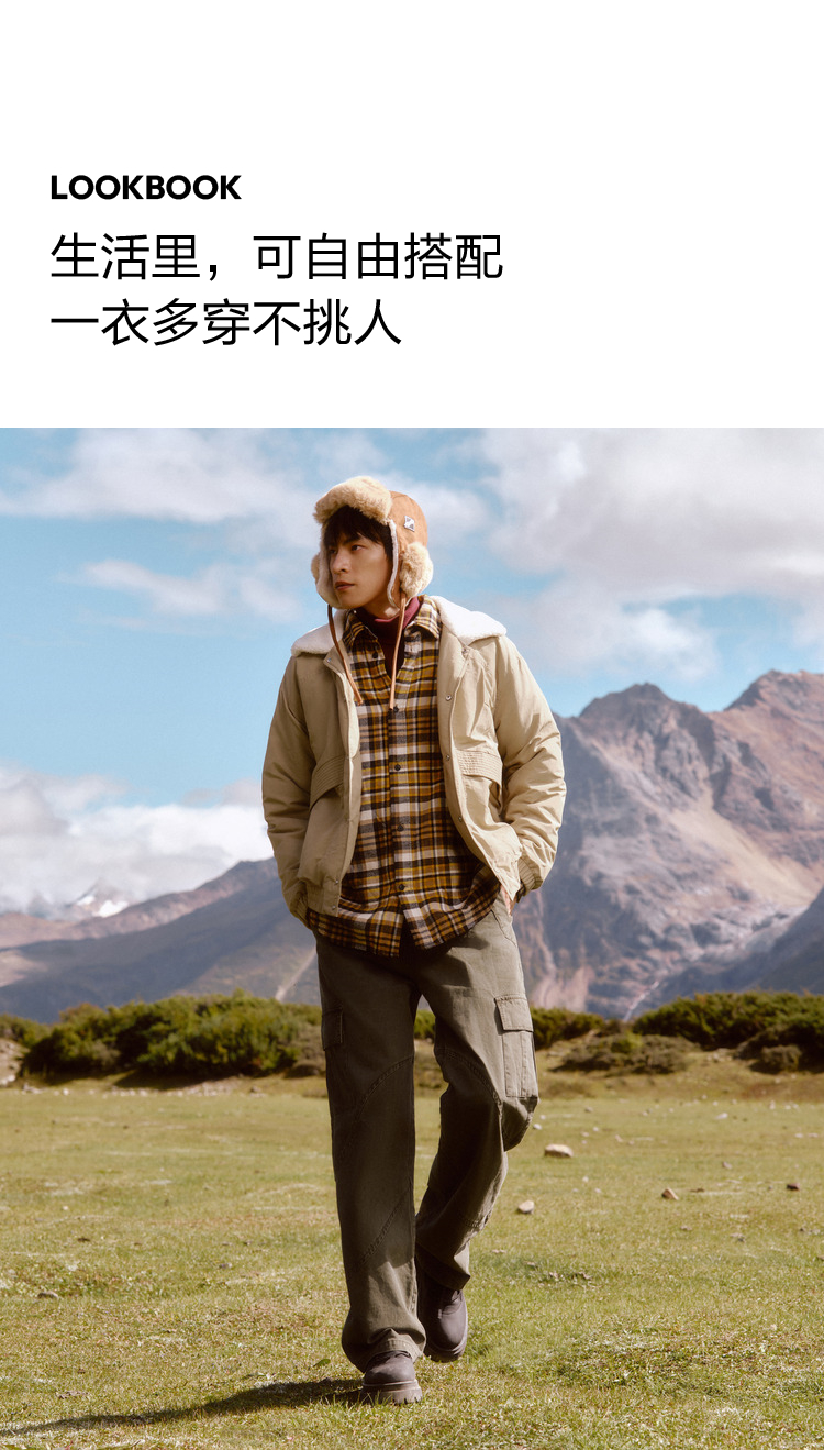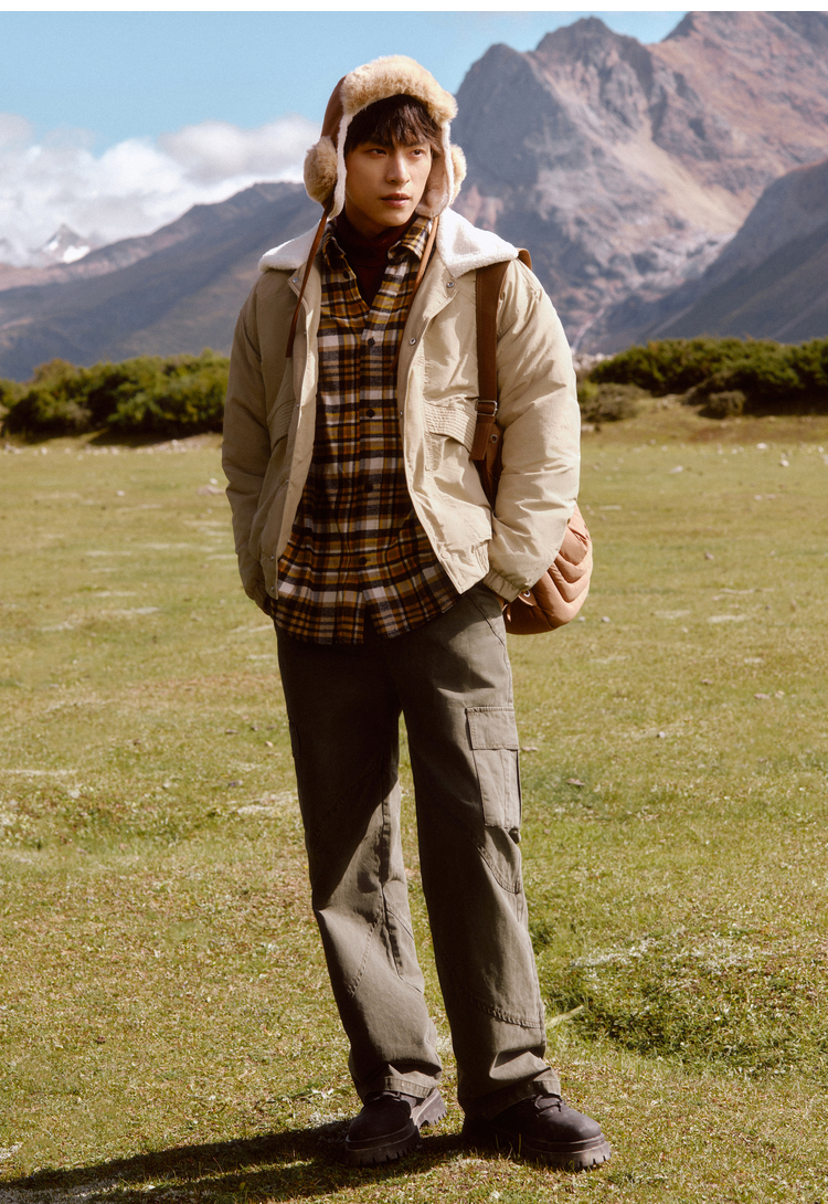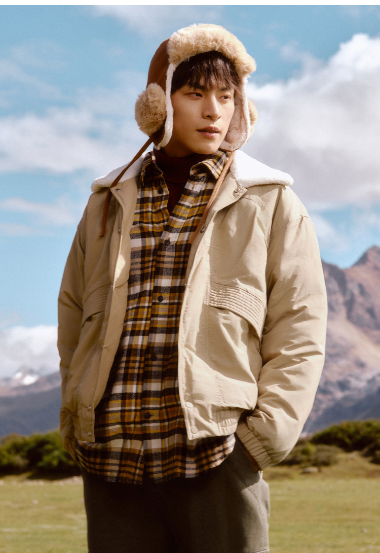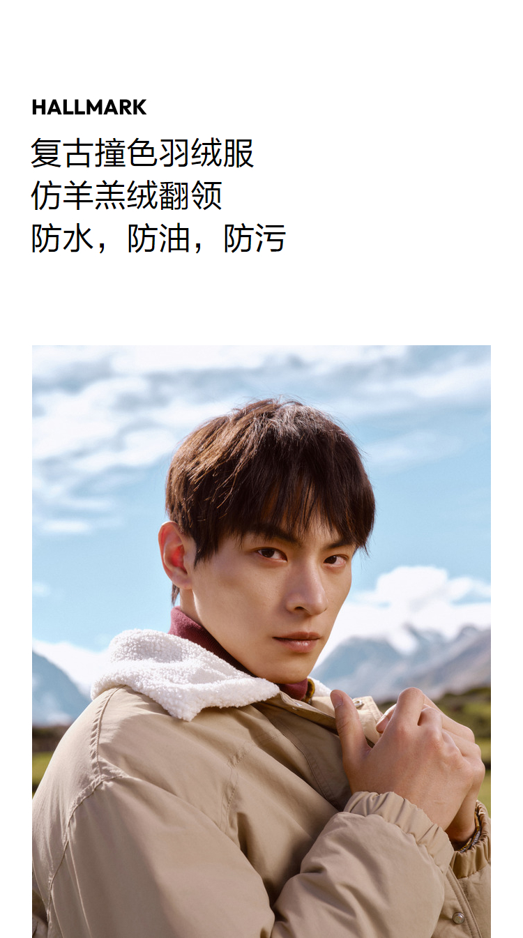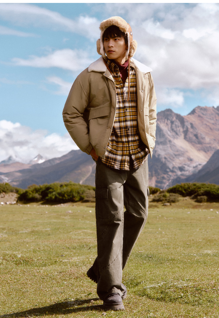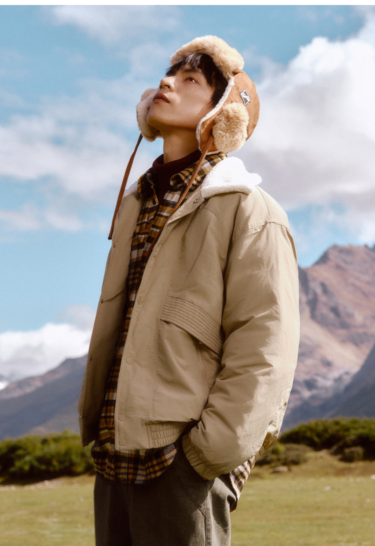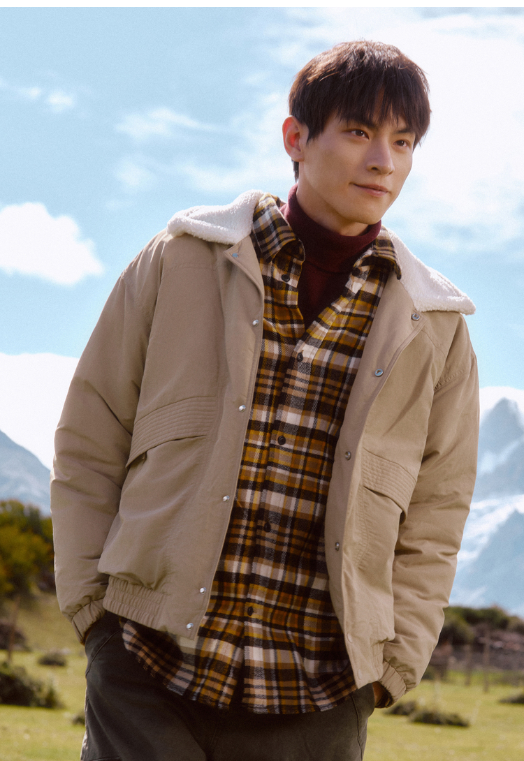 森马羽绒服男中长款冬新款拼接仿羊羔绒翻领夹克宽松三防外套
